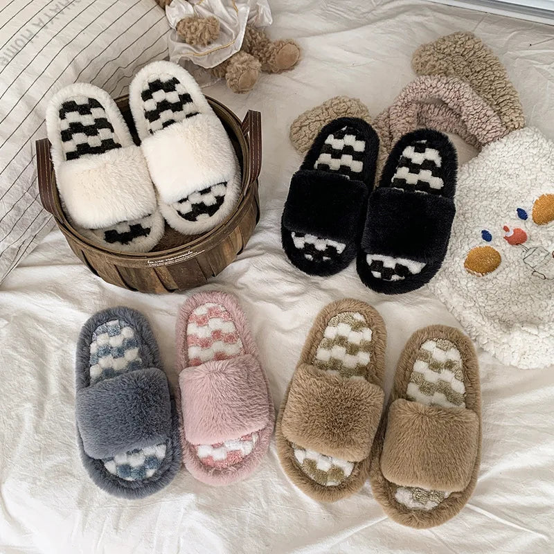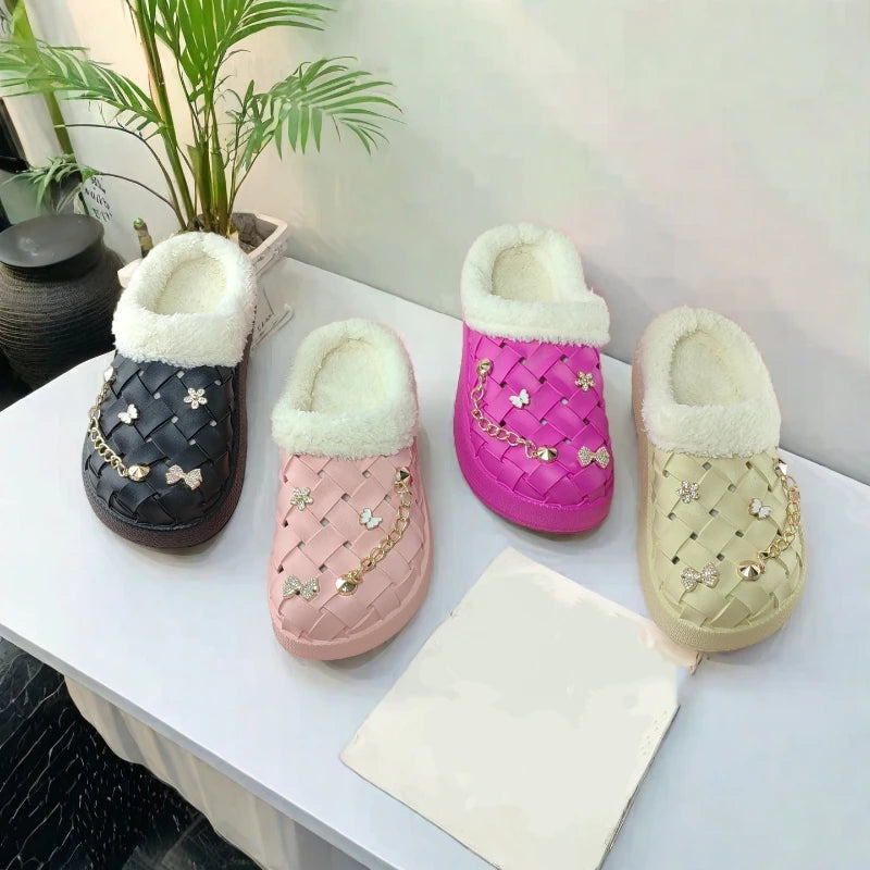 Girls' Home Fur Slippers Kawaii Anti-Skid Warm Cotton Cartoon Plush Waterproof Home Winter Shoes Size 24-41