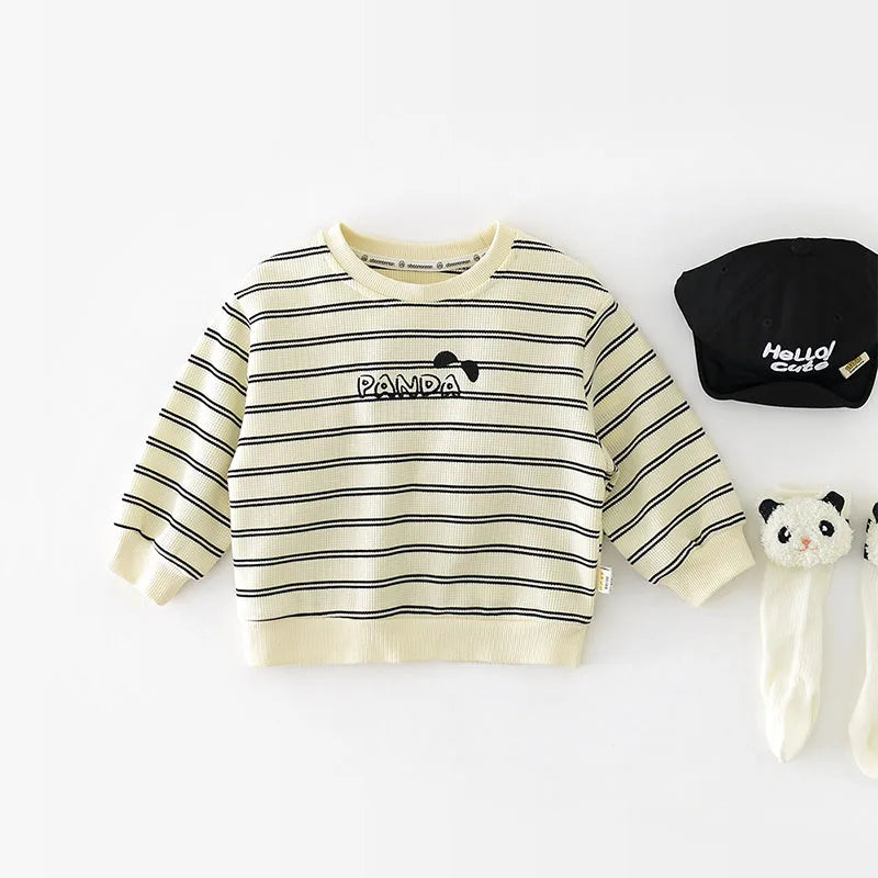 New Spring Kids Hoodie Children Cute Waffle Stripe Sweatshirt Girls Boys Thin Casual Design Pullover Shirt 1-5Y Unisex