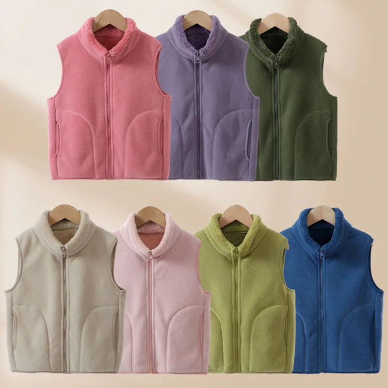 Boys' Winter Warm Vest Solid Colour Big Pocket Waistcoat Zipper Korean Kids Loose Sleeveless Jacket For Children 4-12T
