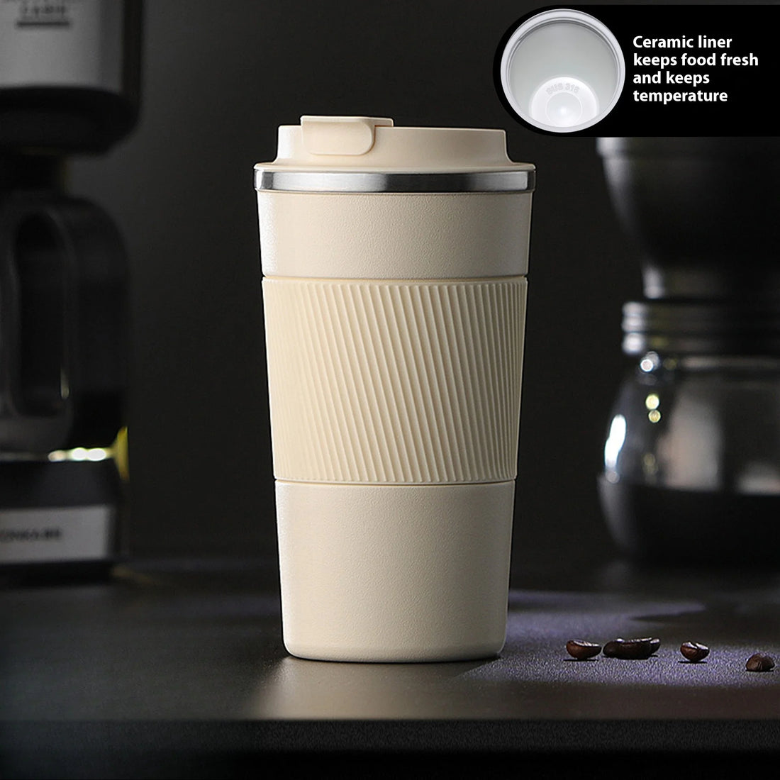 316 Stainless Steel Ceramic Insulated Travel Mug with Handle – Leakproof, Heat-Resistant, Car Cup Holder Friendly – Premium
