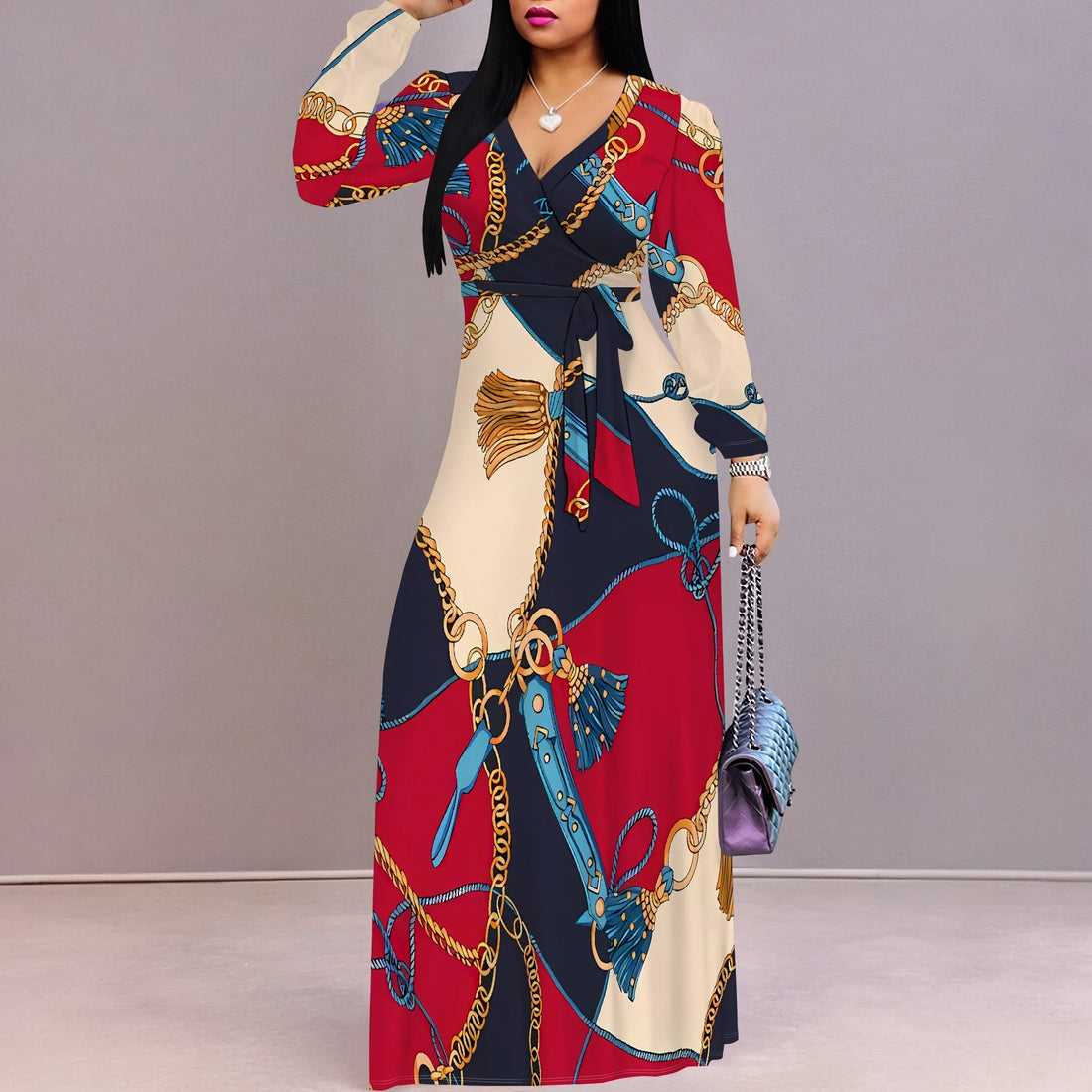 Tribal Patchwork Off Shoulder Maxi Dress Women Boho Style Slim Fit Slit Long Dress Party Clubwear