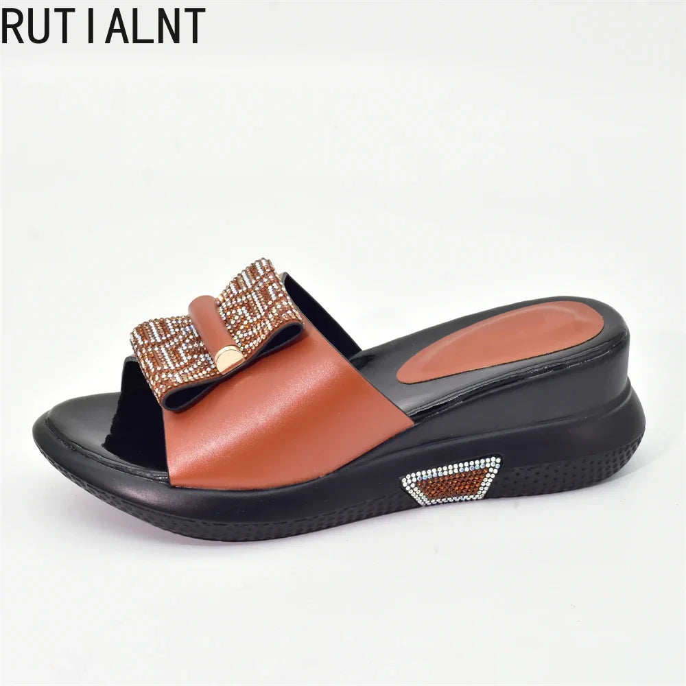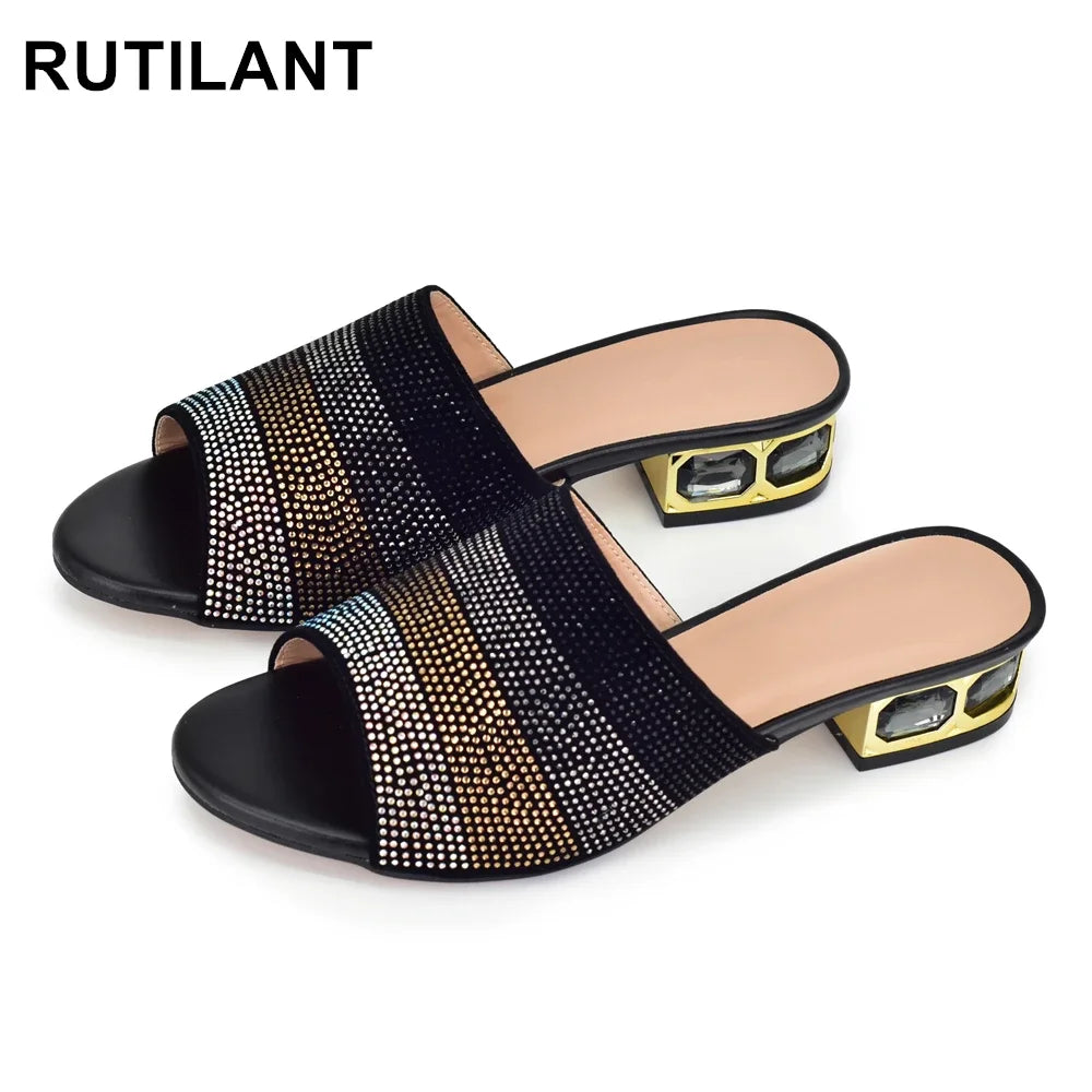 African Women Wedding Shoes Bride Shoes Luxury Elegant Low Heels Rhinestone Lady Slippers Sandals Nigerian Pumps