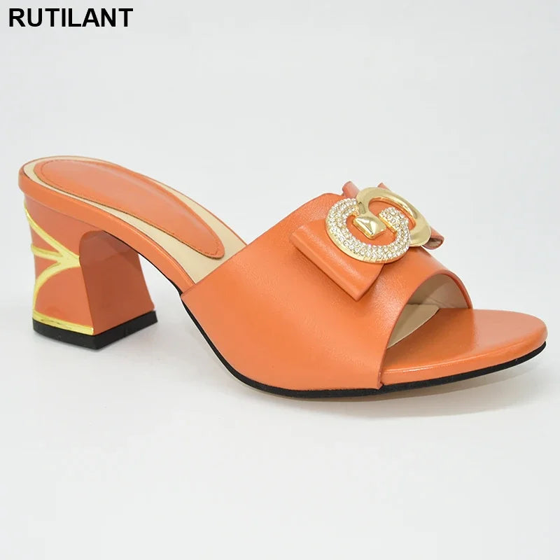 Italian Ladies Shoes Nigerian Women Shoes Pu Leather Sling Back Slipper for Party Open Toe Pumps High Heels Sexy Ladies