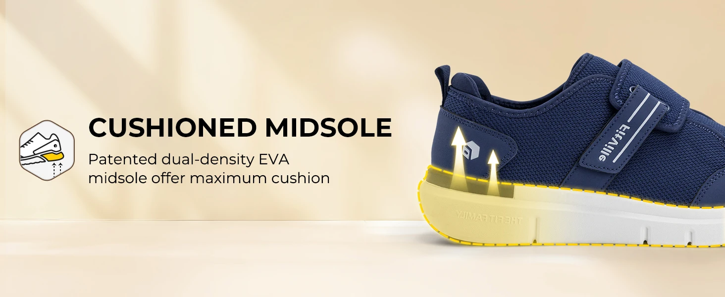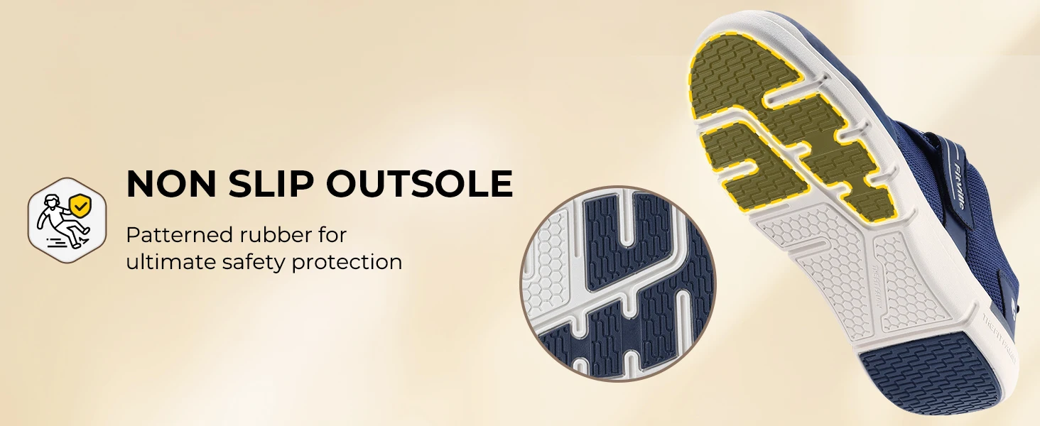 Patentierte Sohlentechnologie: Die Sohle besteht aus einer hochelastischen EVA-Innensohle für hervorragende Stoßdämpfung und einem konkaven, rutschfesten Muster auf der Unterseite, das Sie bei jedem Schritt sicher hält