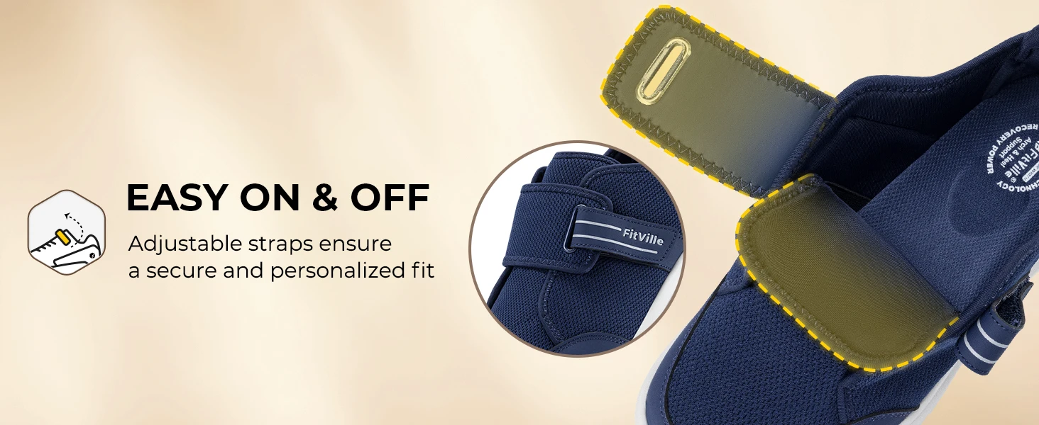 Verstellbarer Riemenverschluss: Diese Diabetikerschuhe verfügen über verstellbare Riemen anstelle von Schnürsenkeln, wodurch die Diabetikerschuhe für Herren leichter an- und ausgezogen werden können und für einen sicheren Sitz sorgen.