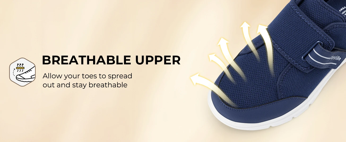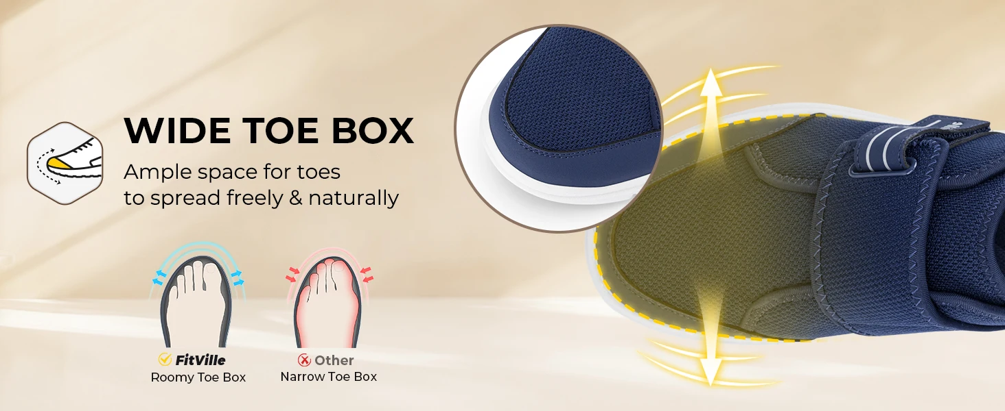 Design für geschwollene Füße: Das breite Zehenbereich-Design bietet ausreichend Platz für die Zehen, um Fußschmerzen wie Plantarfasziitis, Plattfüße und Hammerzehen zu reduzieren