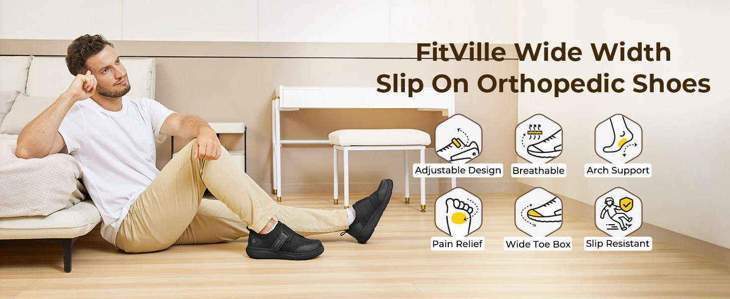 Diabetikerschuhe für Herren, extra breit, mit Klettverschluss, für ältere Menschen, zur Linderung von geschwollenen Füßen und Neuropathie