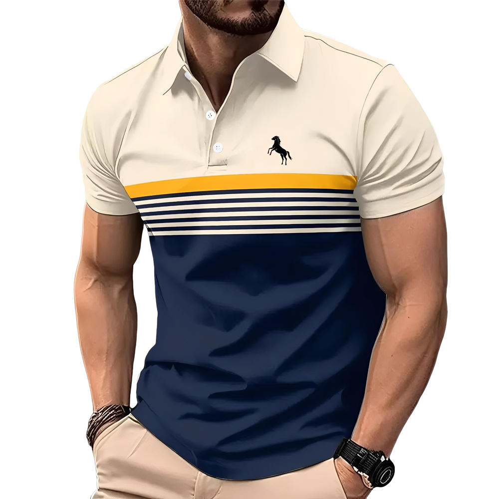 Men's Casual Striped Colour Block Design Sports Style Collar Golf Shirt