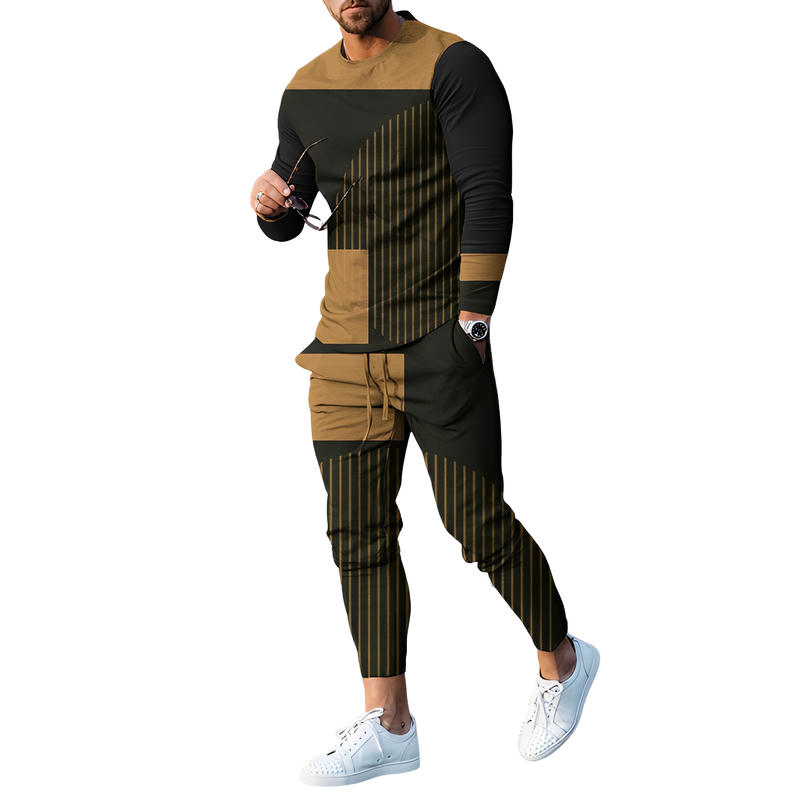 Men's Sports And Leisure Suit Pullover Round Neck - Long Sleeves Striped Sweater Two Pieces Suit