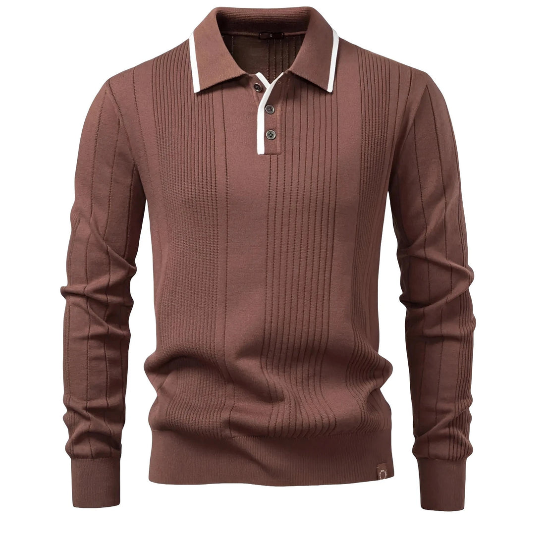 Men's Button Down Solid Colour Long-Sleeve Polo Shirt Suitable For Fall And Winter - Luxury Business Casual & Sweater