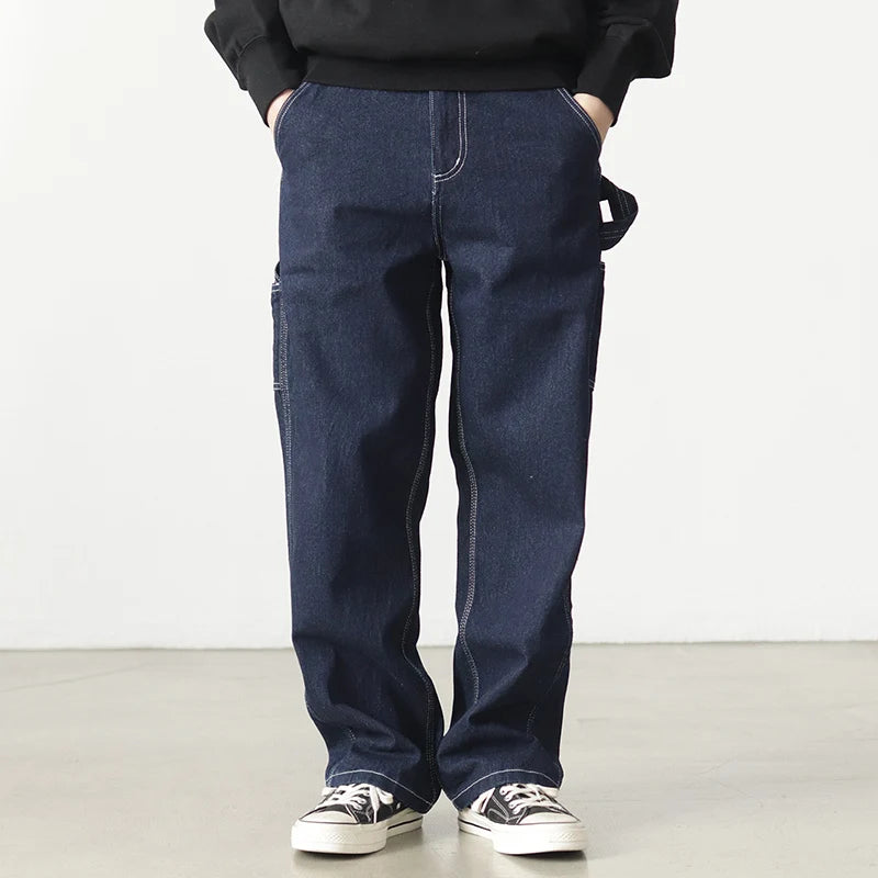 3903# Spring New American Retro Denim Carpenter Cargo Jeans Heren 100% Katoen Gewassen Losse Casual Multi-pocket Rechte Broek