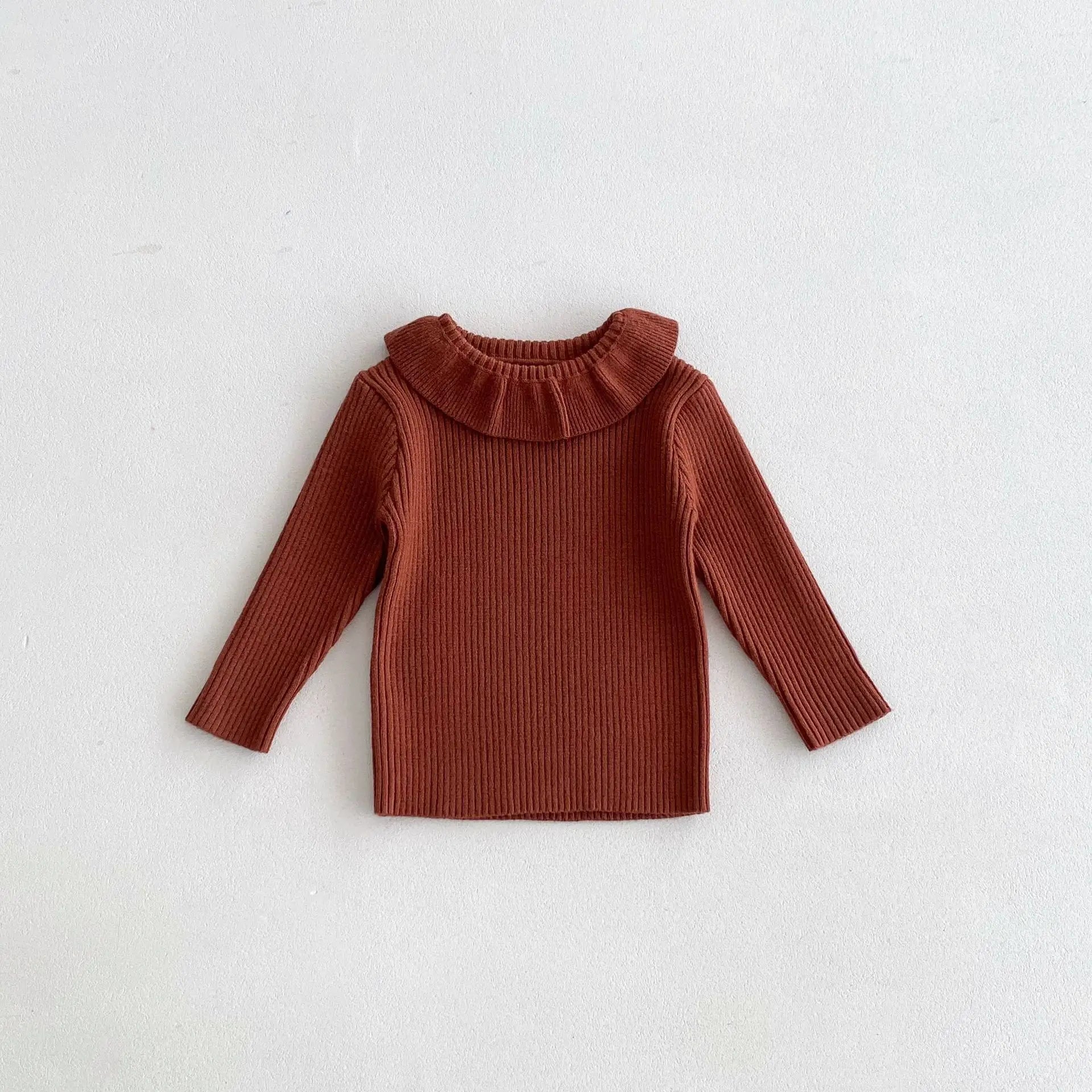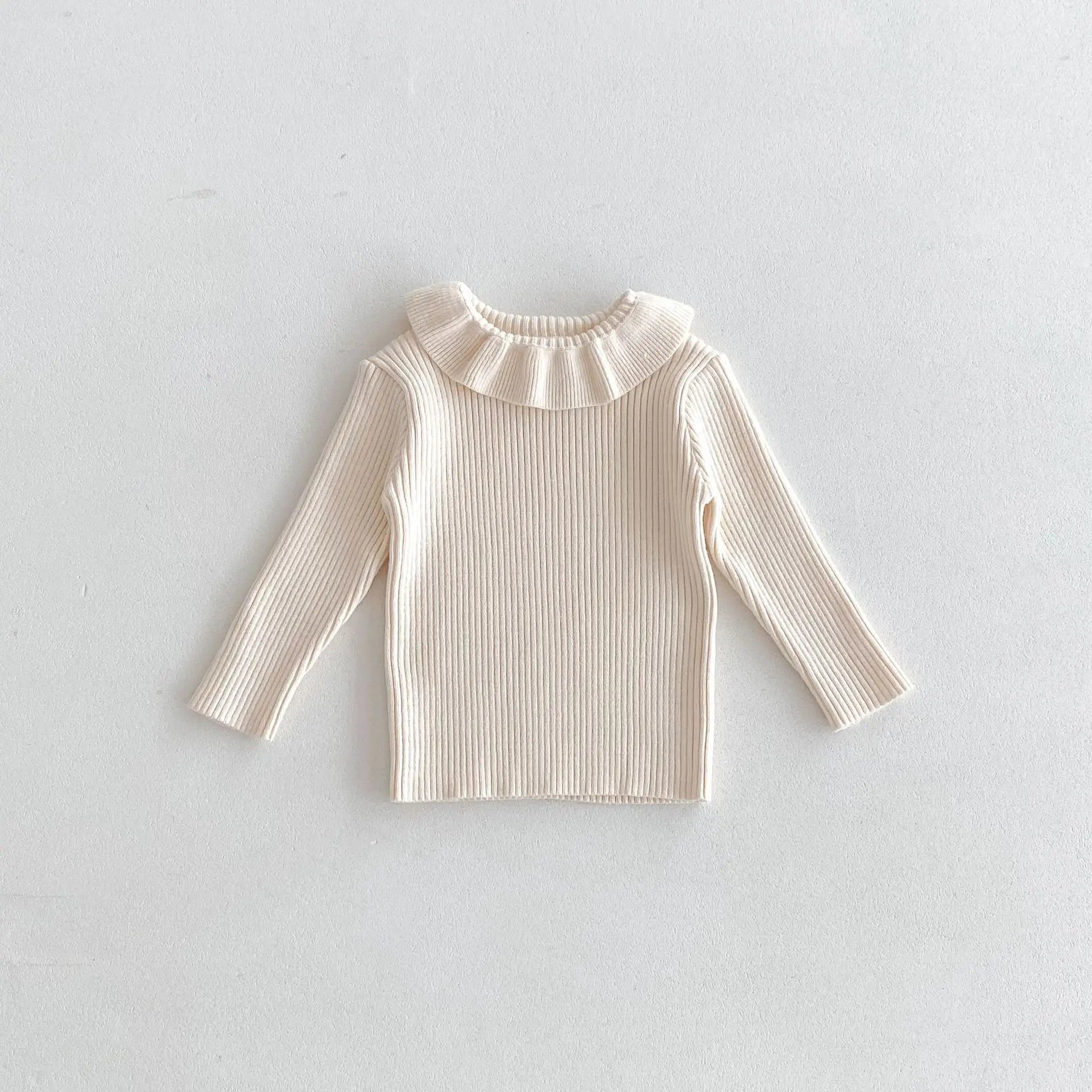 2025 Nieuwe effen trui met onderkant voor meisjes. Kinderkleding met lotusbladkraag en gebreide trui met basistopjes voor meisjes van 1-6 jaar.