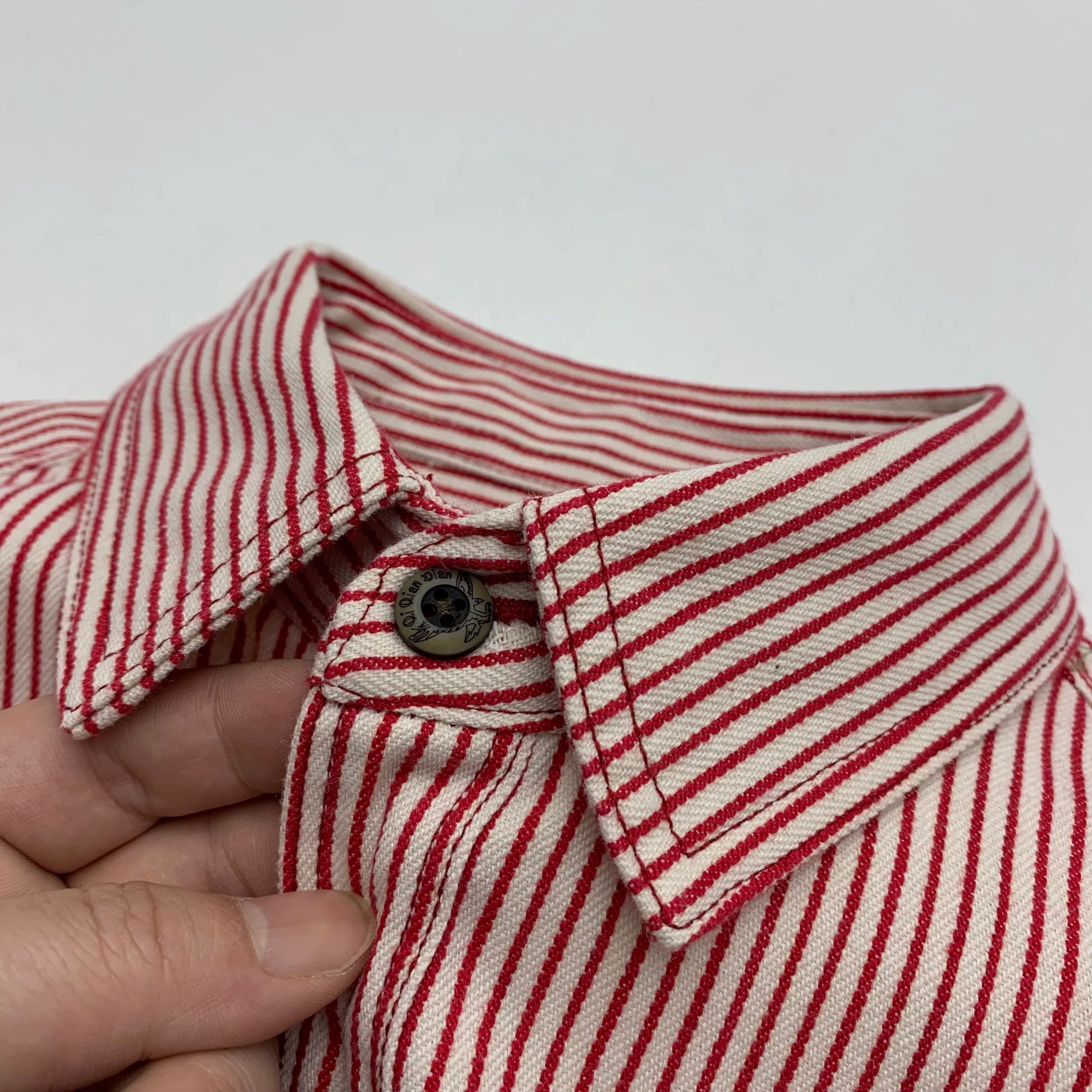 2025 Lente Nieuwe Japanse Retro Lange Mouw Revers Gestreepte Cargo Shirt Heren Amekaji 100% Katoen Gewassen Losse Dubbele Zakken Tops