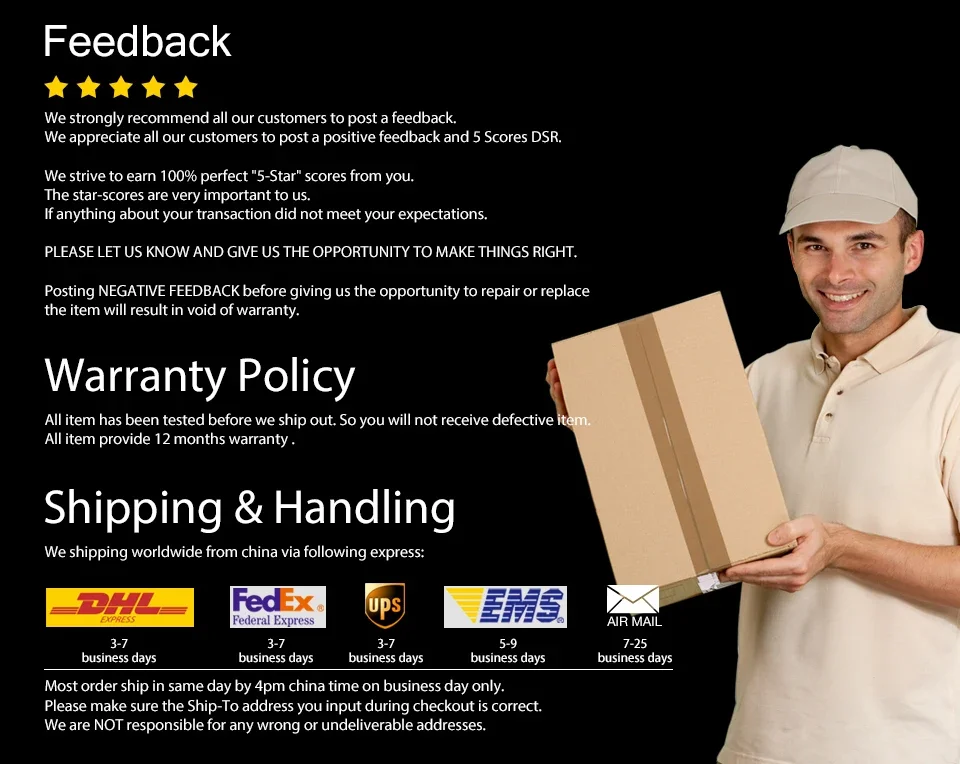 Als u om welke reden dan ook niet tevreden bent, neem dan contact met ons op voordat u negatieve feedback achterlaat. Wij doen ons uiterste best om u te helpen het probleem op te lossen totdat u tevreden bent met uw aankoop!