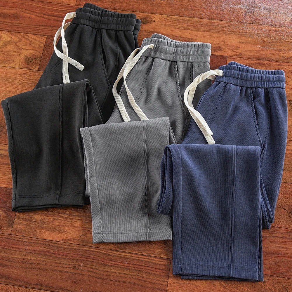Herfst Nieuwe Amerikaanse Retro Dikke Effen Kleur Gebreide Joggingbroek Heren Eenvoudige Elastische Taille Trekkoord Sport Casual Losse Broek