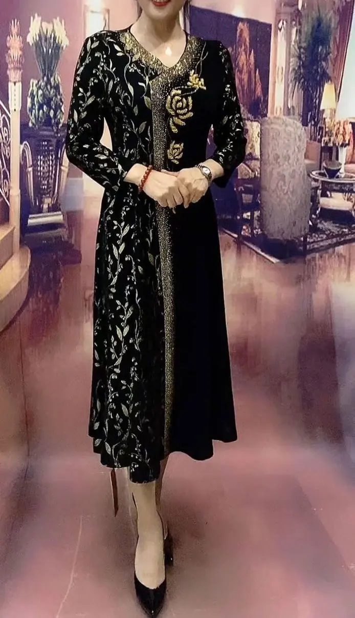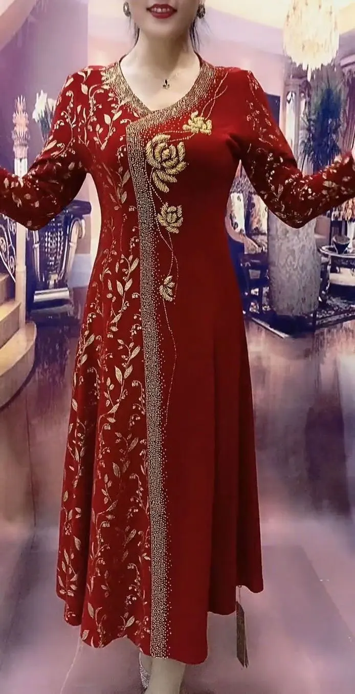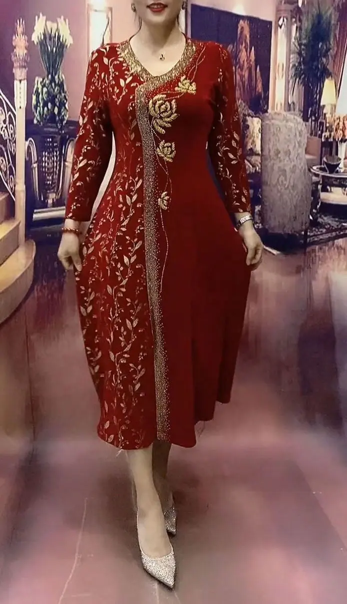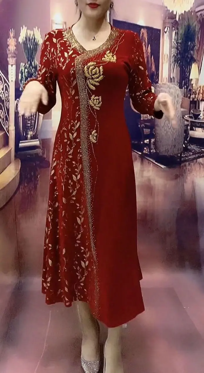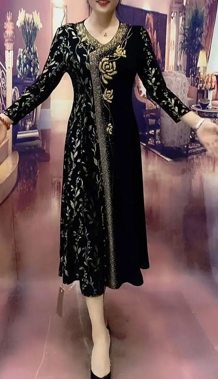 Elegante V-halsjurken met print voor woon-werkverkeer Lente Herfst Nieuwe A-lijn Dameskleding Lange mouwen Stijlvolle bloemenruiten Lange jurk