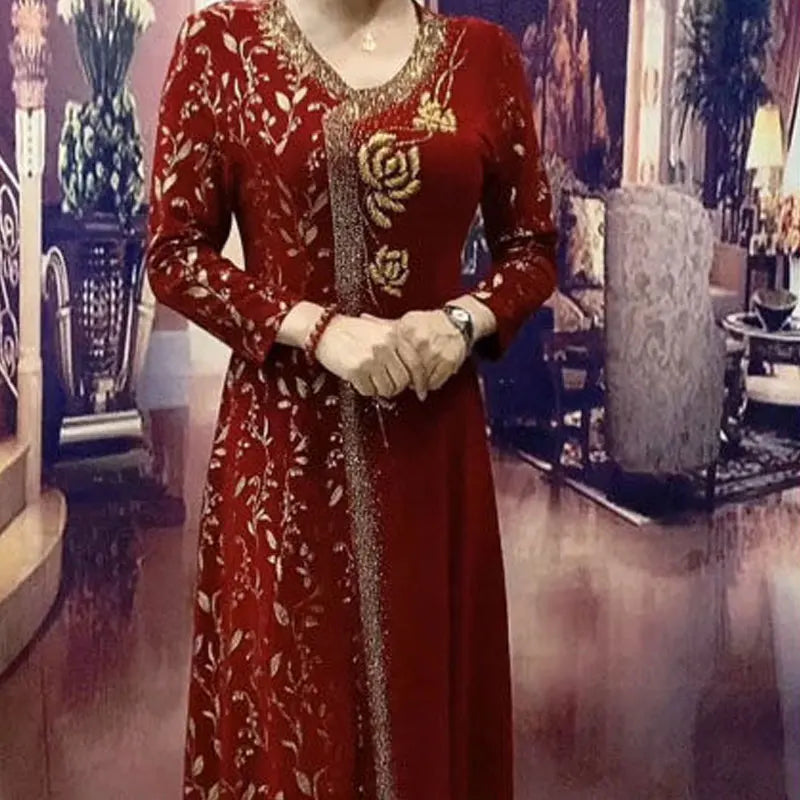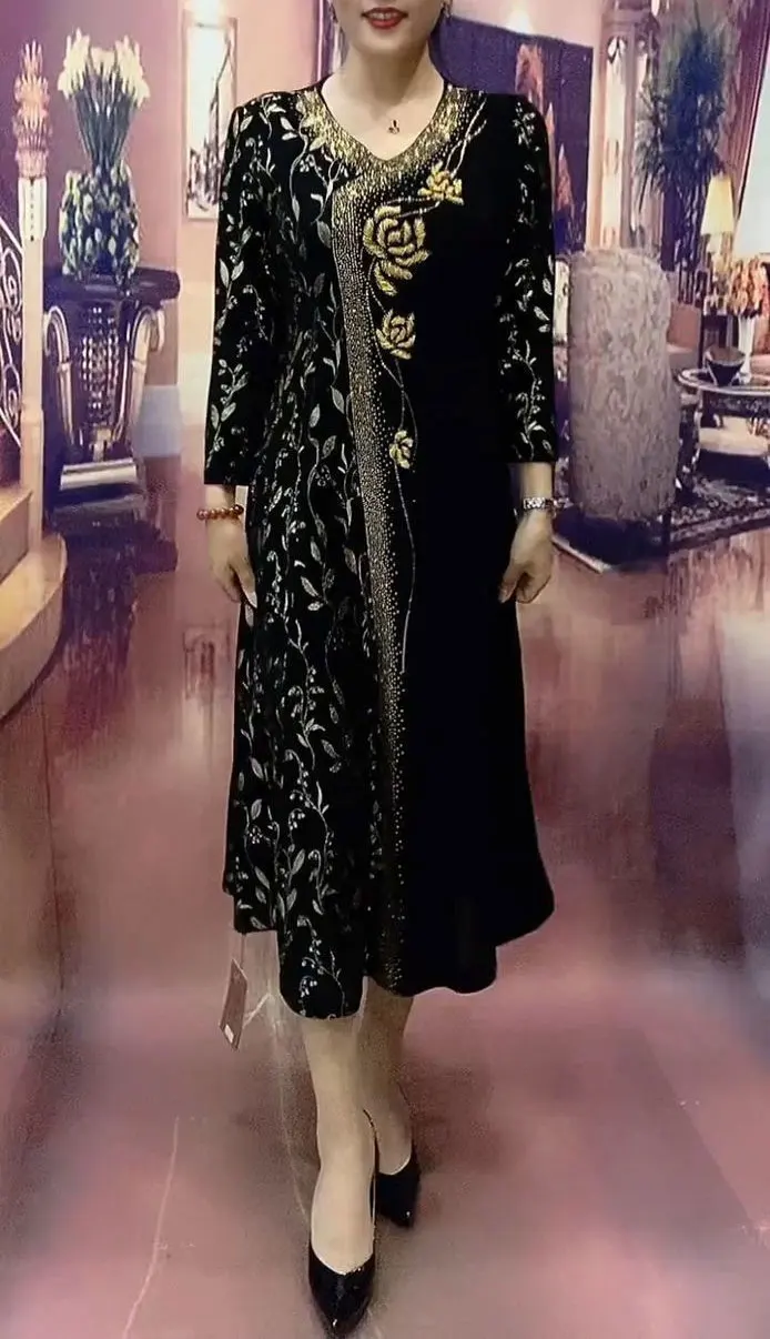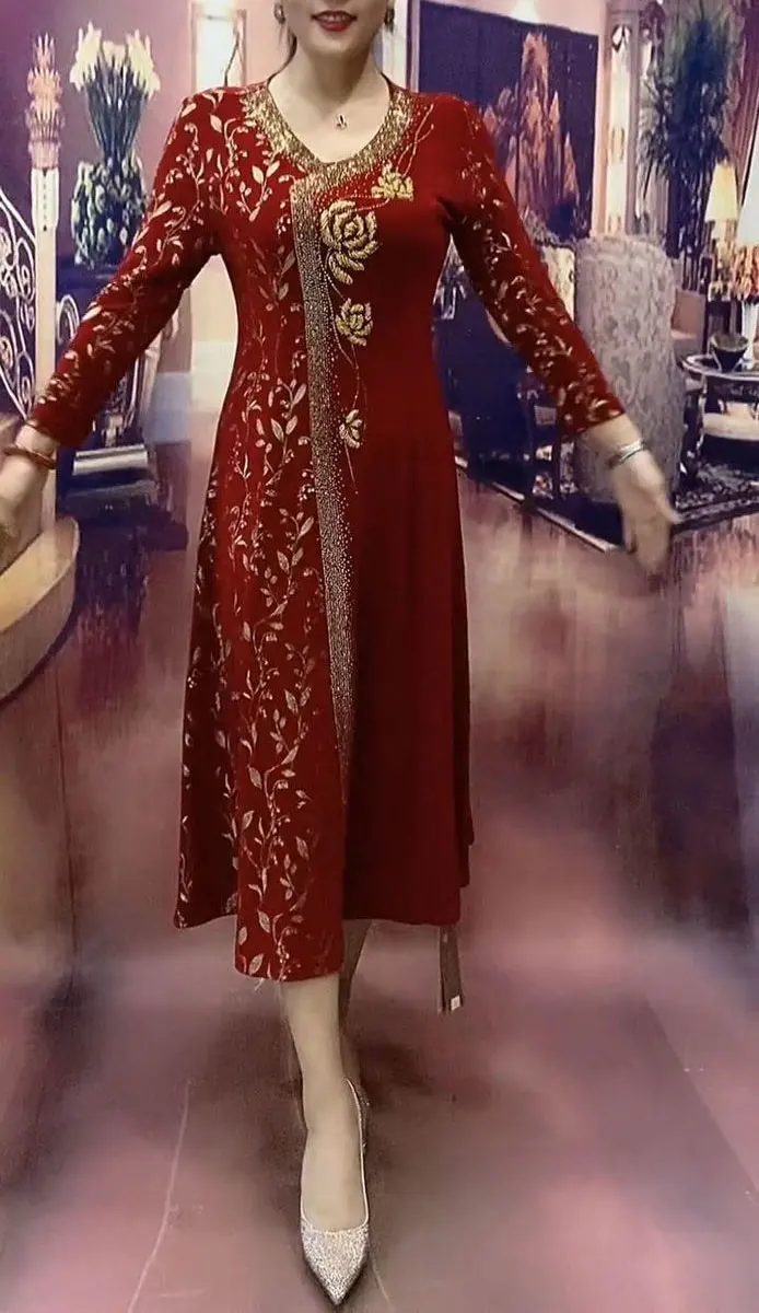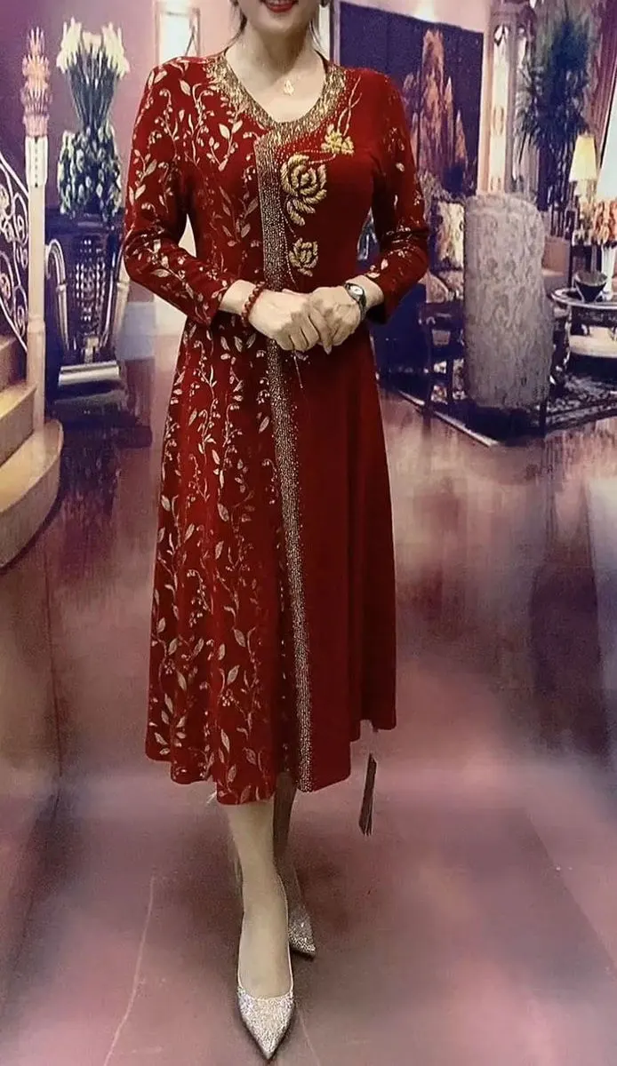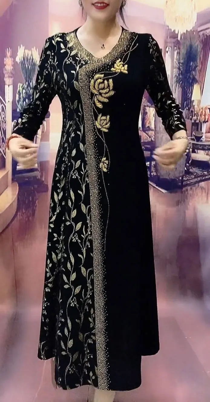 Elegante V-halsjurken met print voor woon-werkverkeer Lente Herfst Nieuwe A-lijn Dameskleding Lange mouwen Stijlvolle bloemenruiten Lange jurk