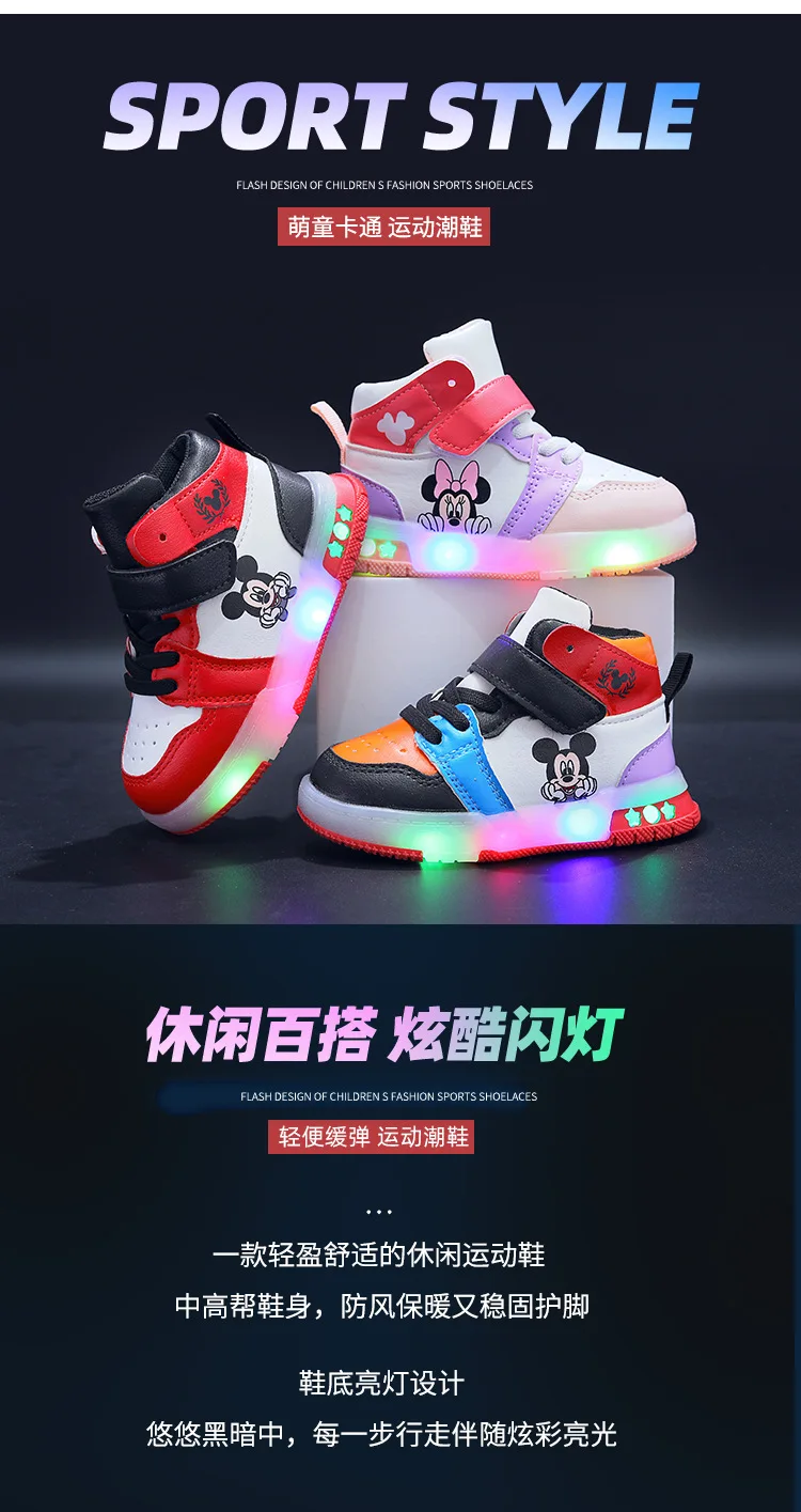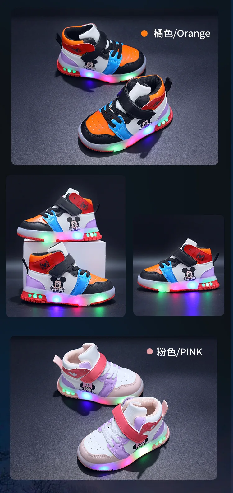 Disney meisjes casual sneakers PU leer Mickey Mouse LED-lichtgevende kindersneakers - 1-6 jaar oud Sport casual schoenen