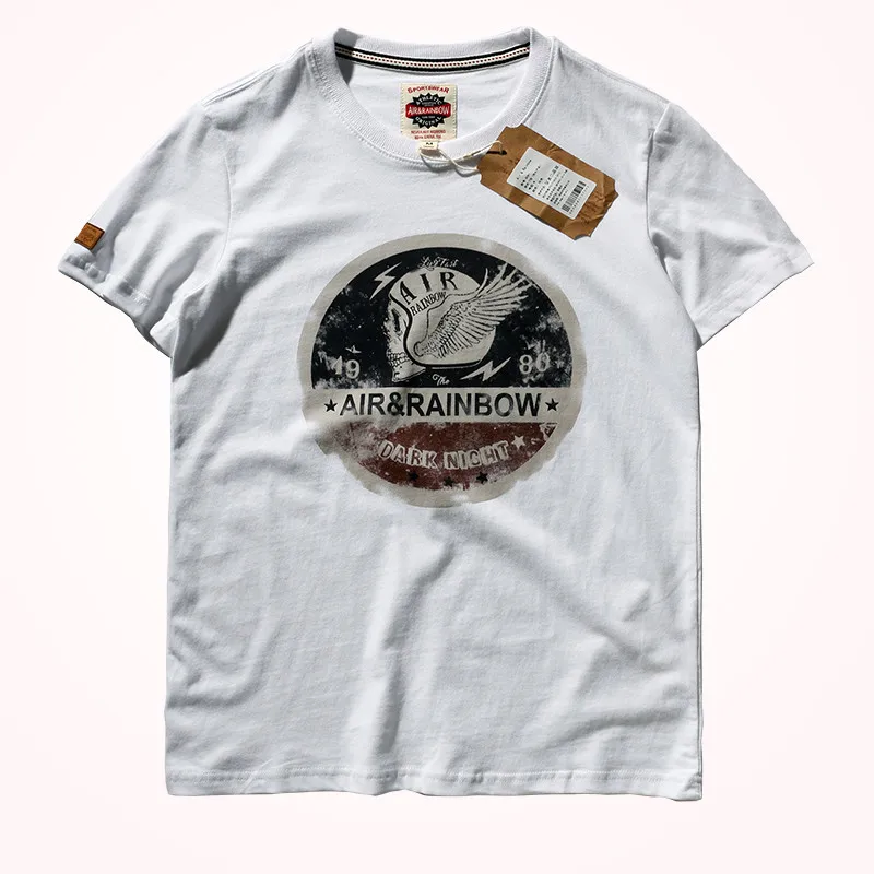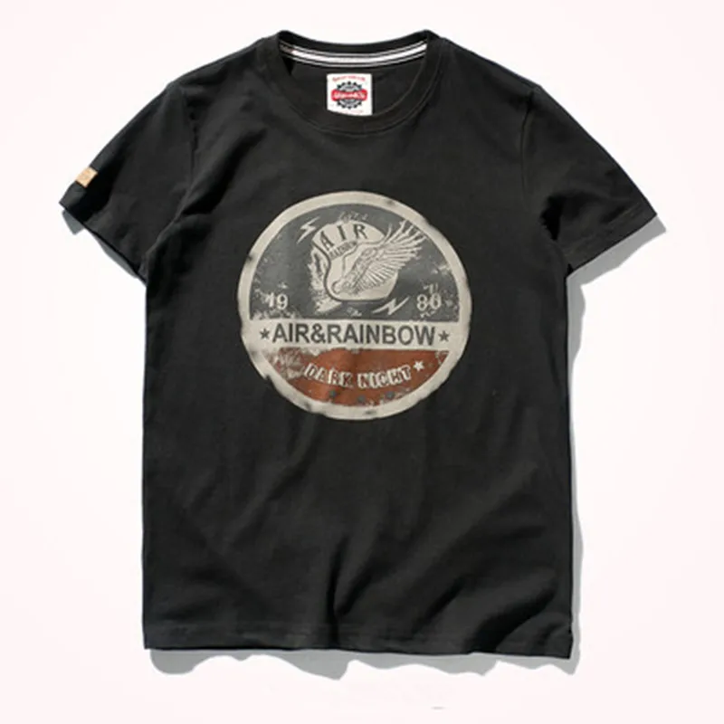 Zomer Nieuw Korte Mouw O-hals Bedrukt T-shirt Herenmode 100% Katoen Gewassen Oude Losse Geborstelde Stof Grote Maten Casual Tops