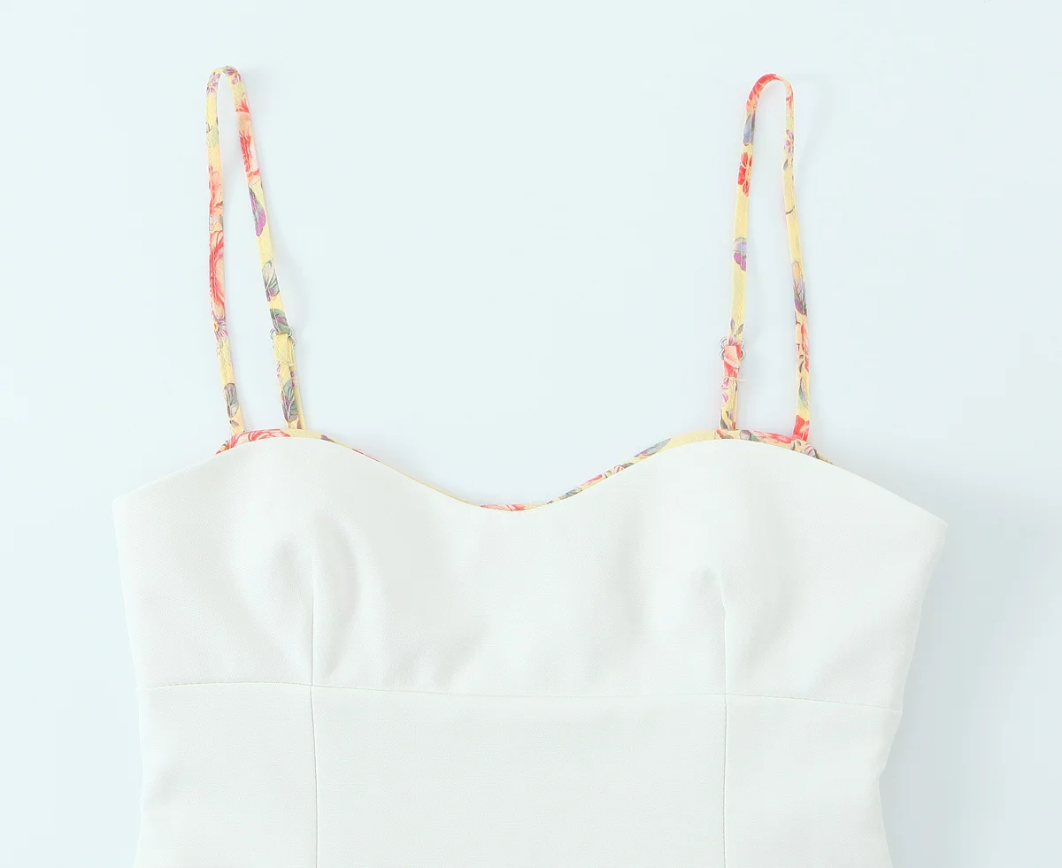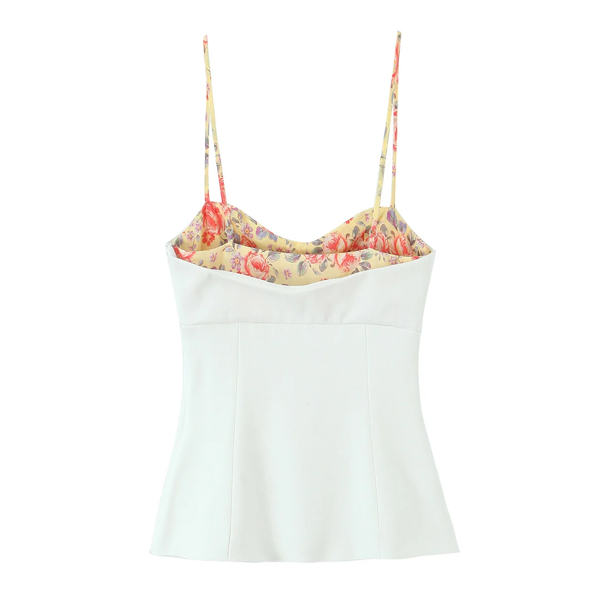 Sexy verstelbare spaghettibandjes print witte camisole dames chique feest zomer crop