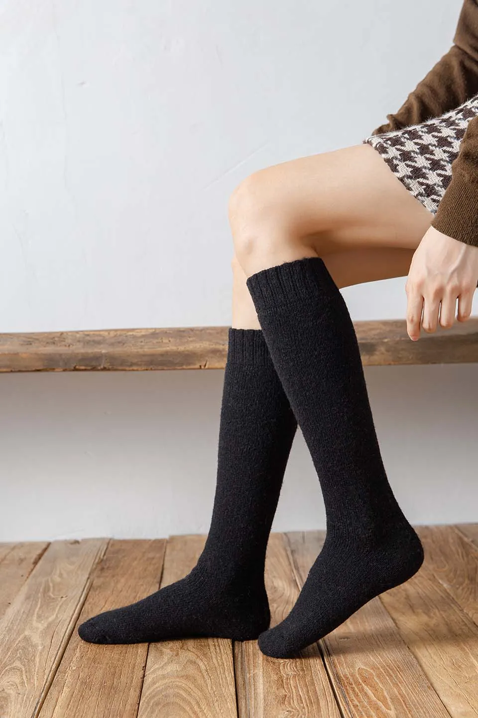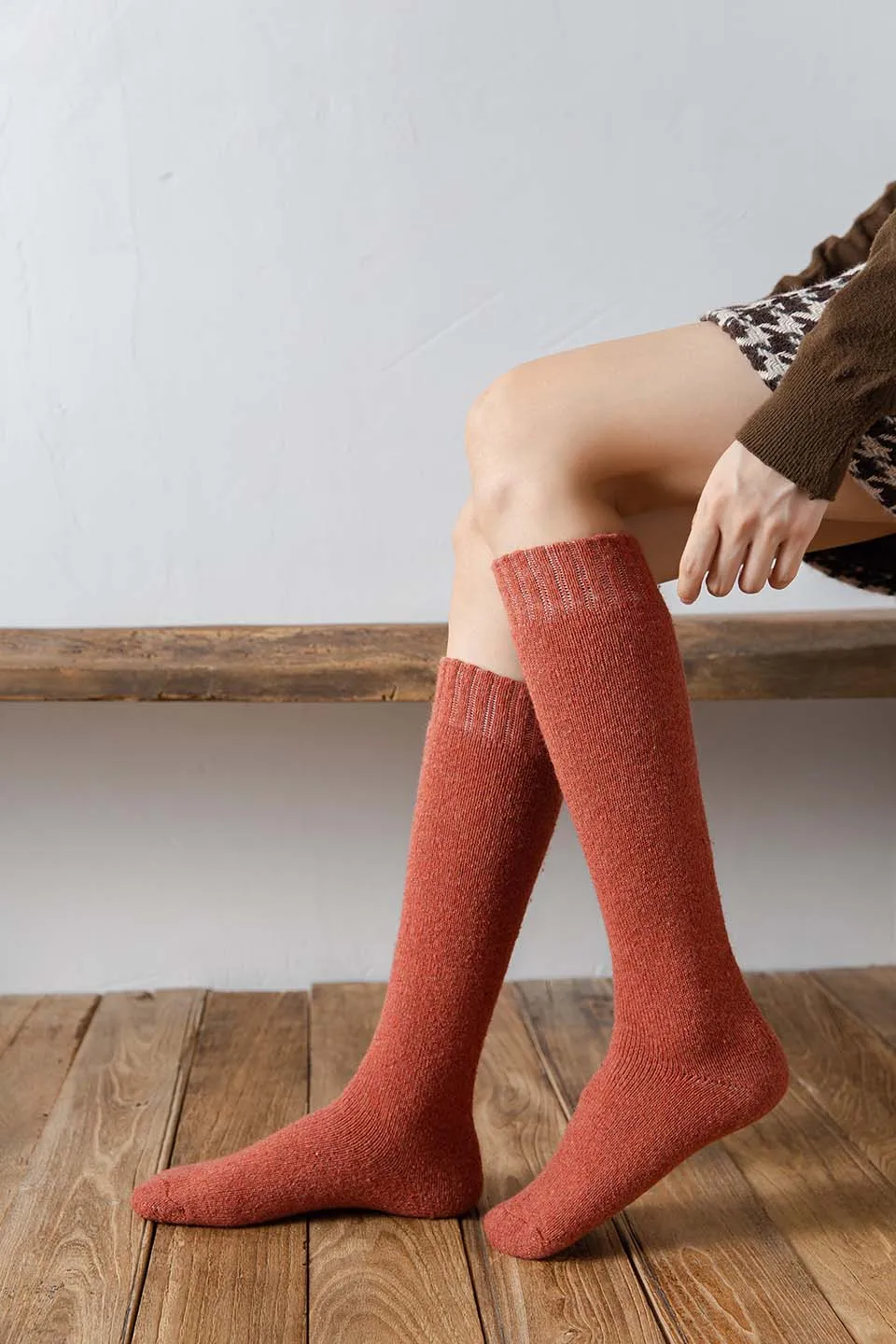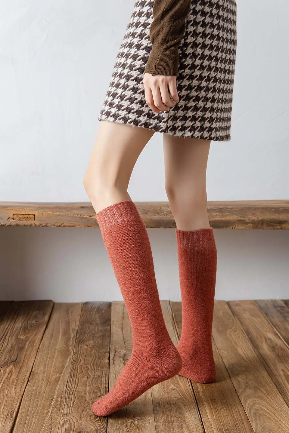 Winter Dames Merino Wol Hoge Knie Lange Sokken Dikke Warme Harajuku Retro Compressie Vrouwelijke Kasjmier Kousen