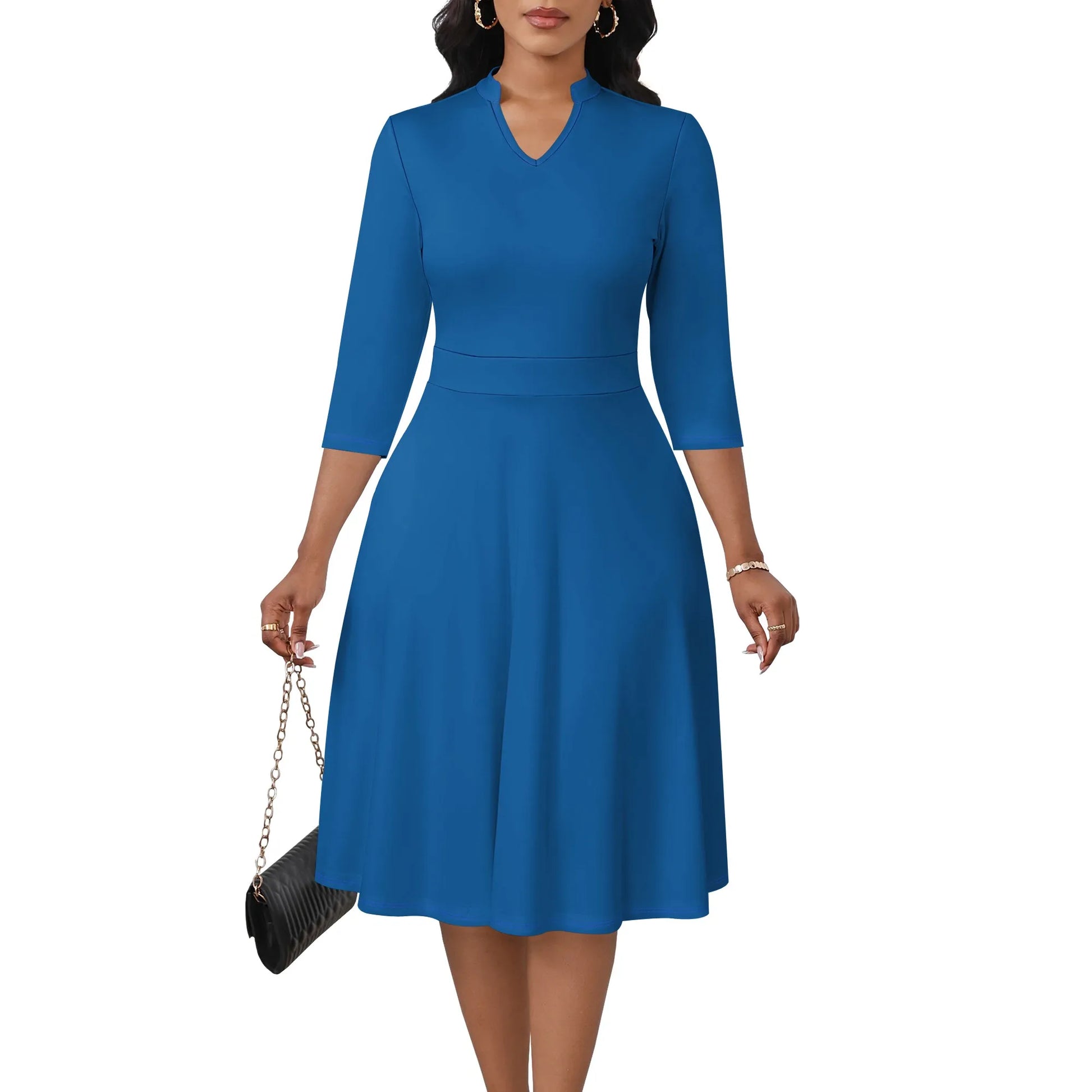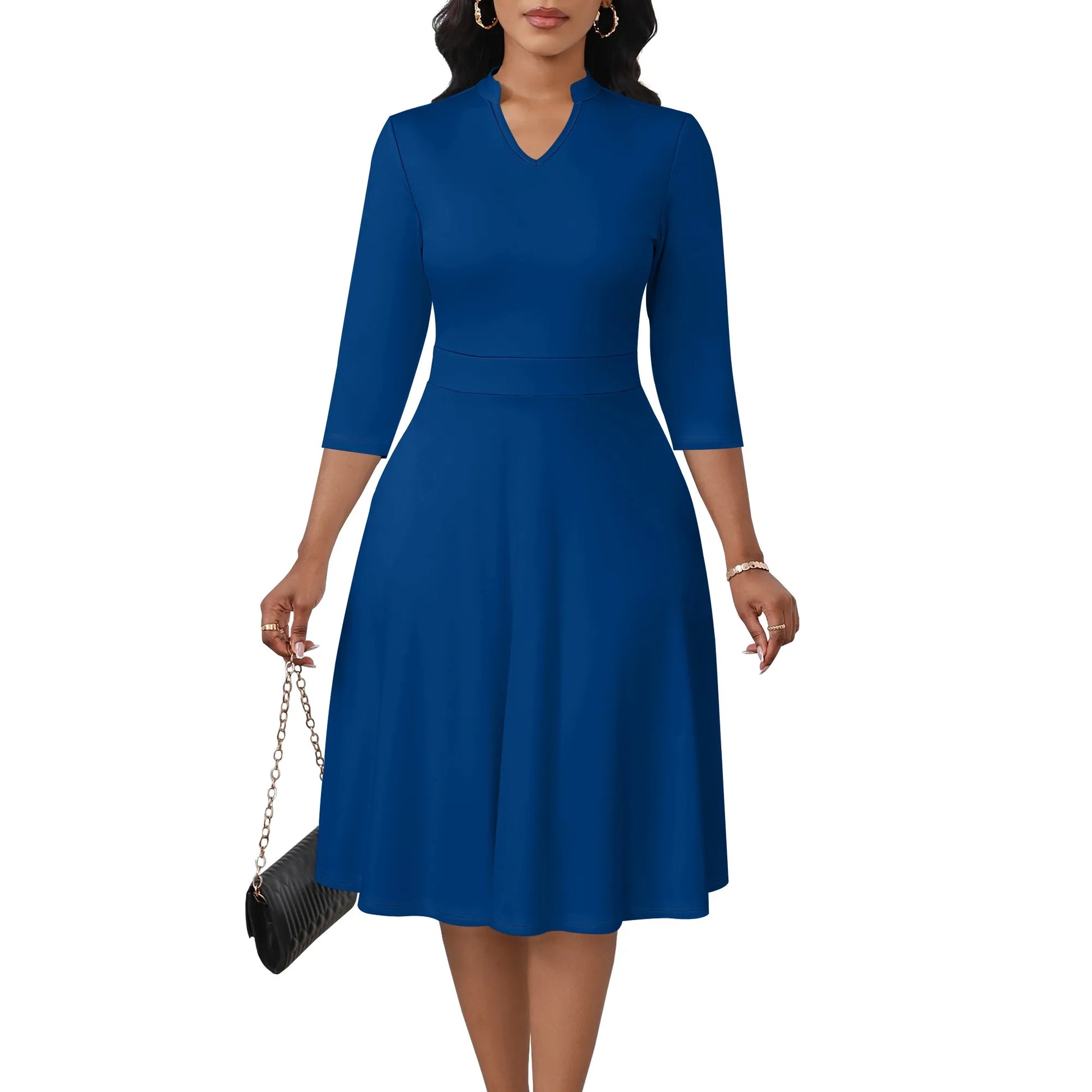 Women's Abstract Off Shoulder Maxi Dress 3/4 Sleeve Blue Gold Slit Party Evening