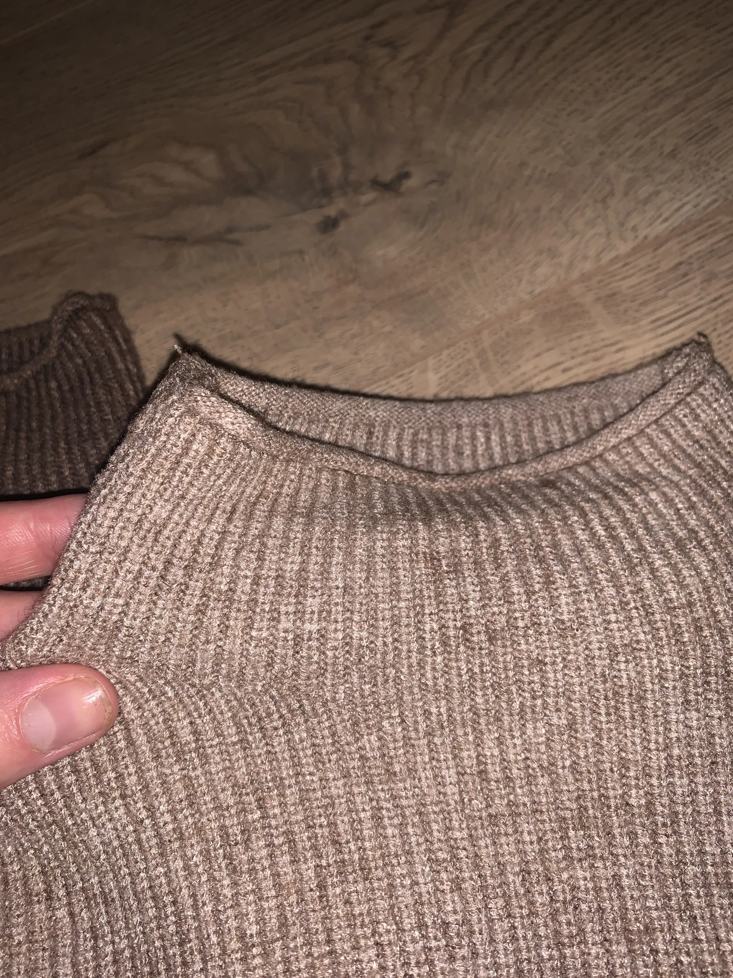 There will be a size label on the front of the sweater, which can be removed by hand or cut off with scissors without damaging the garment.