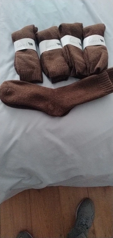 Preferable is extra-fine sheep wool. A pair of warm woolen socks.