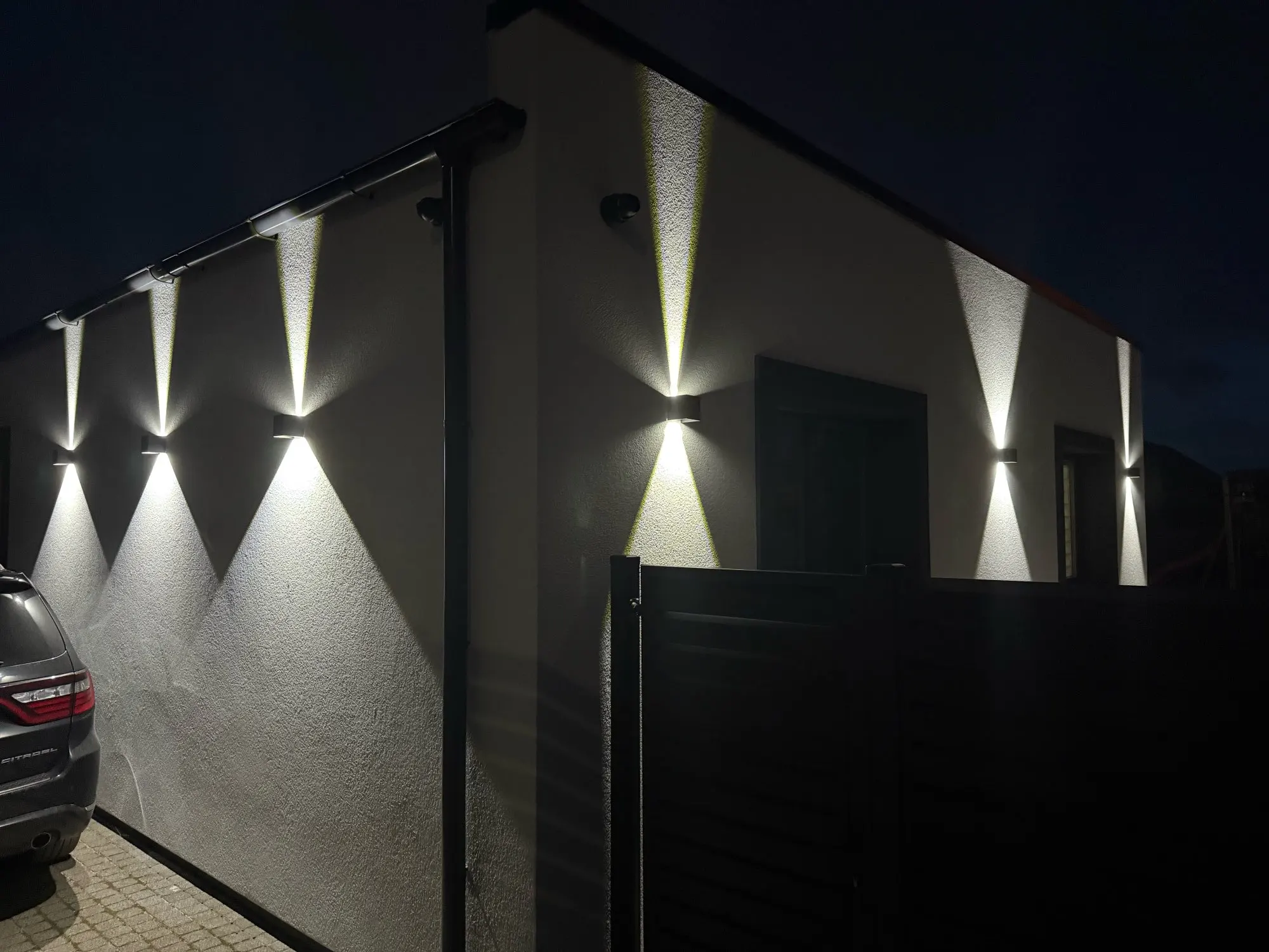 ●【Adjustable beam angle】The outdoor wall light comes with upper and lower blades, and the beam angle can be adjusted independently (0-120°), which can create different shapes of light.