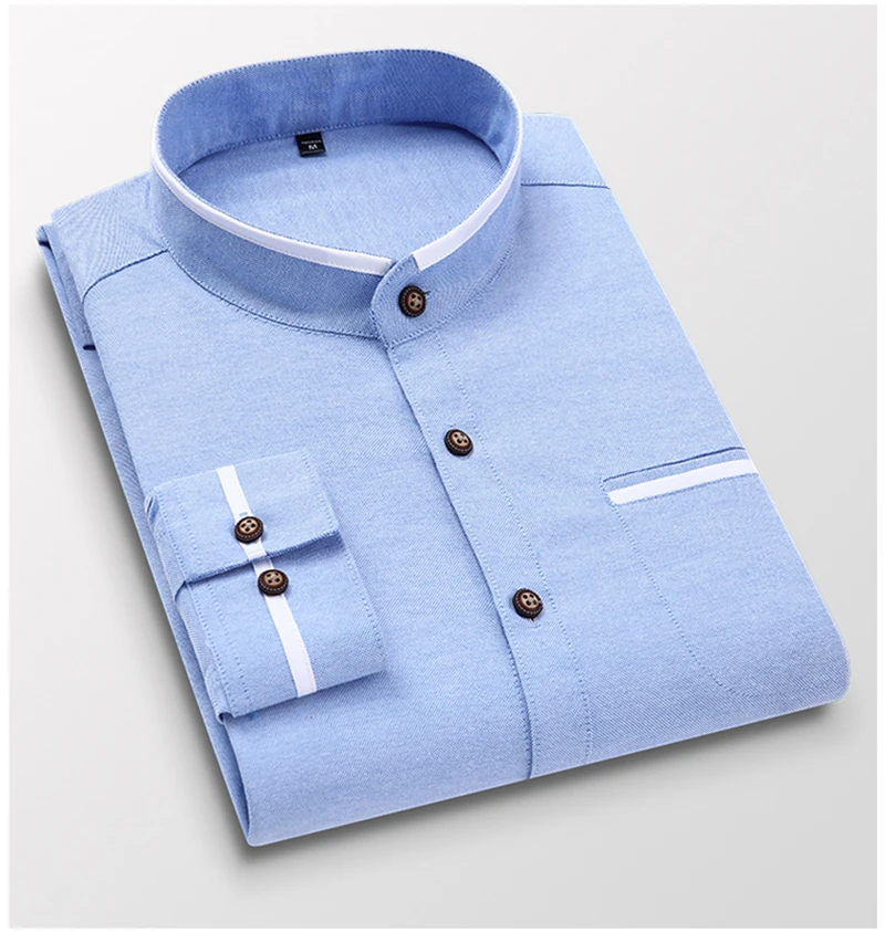 Autumn Long Sleeve Shirt Men Oversized Shirts Men Pocket Design Korean Style Stand-up Collar Slim Shirt Men's Clothing