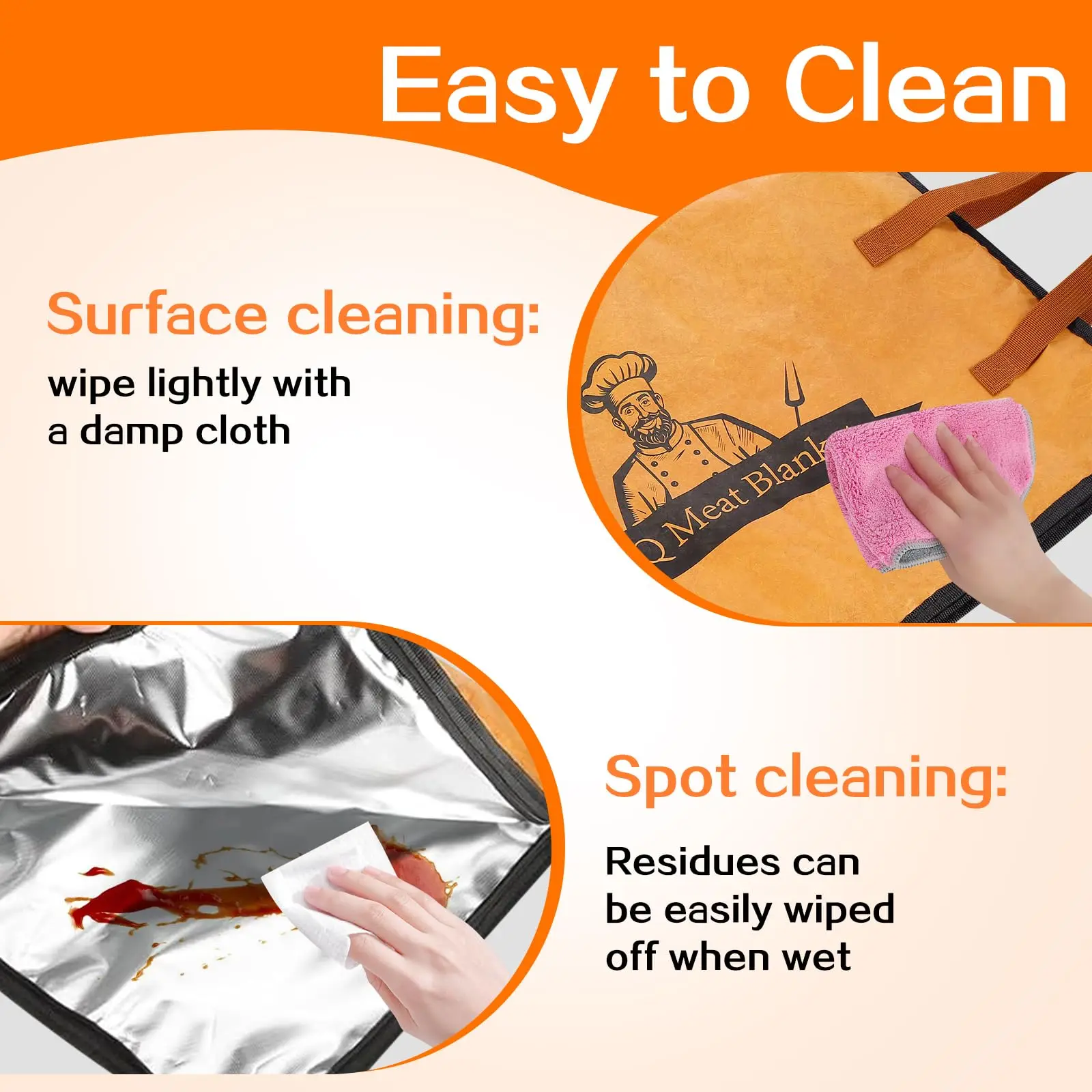 【Easy to Clean】This insulated meat resting bag is easy to clean—simply wipe it with a wet cloth or wash with warm soapy water. It can also be placed in the dishwasher for convenience. Even with frequent use, it will stay clean, ensuring a worry-free BBQ experience every time.
