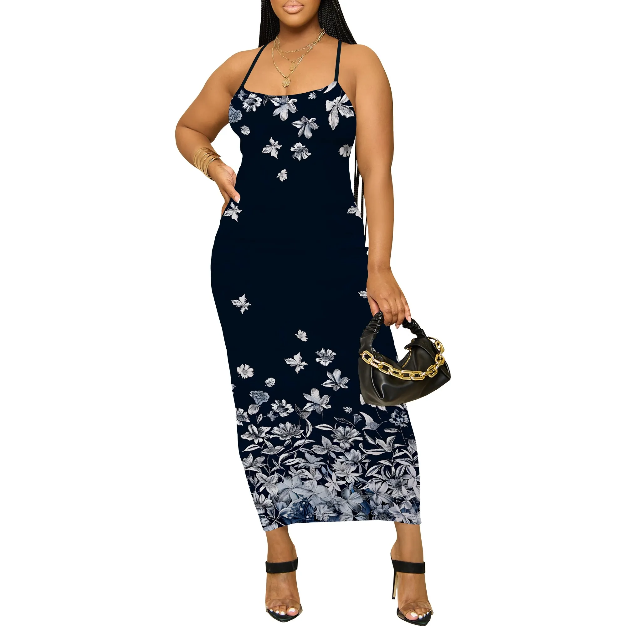 Blue White Floral Print Spaghetti Strap Dress Elegant Summer Garden Look