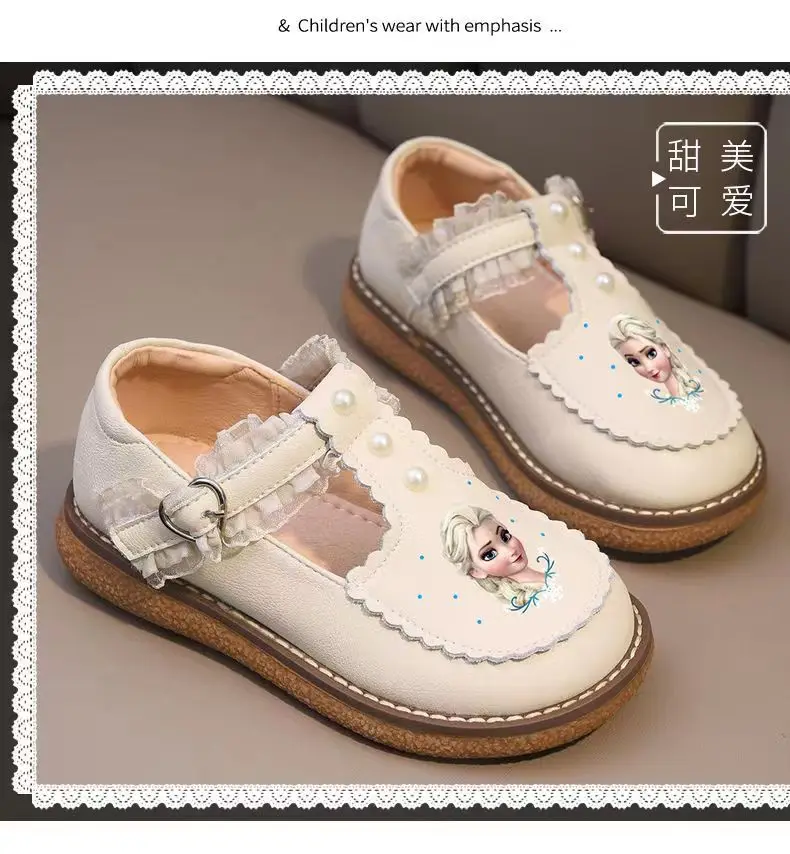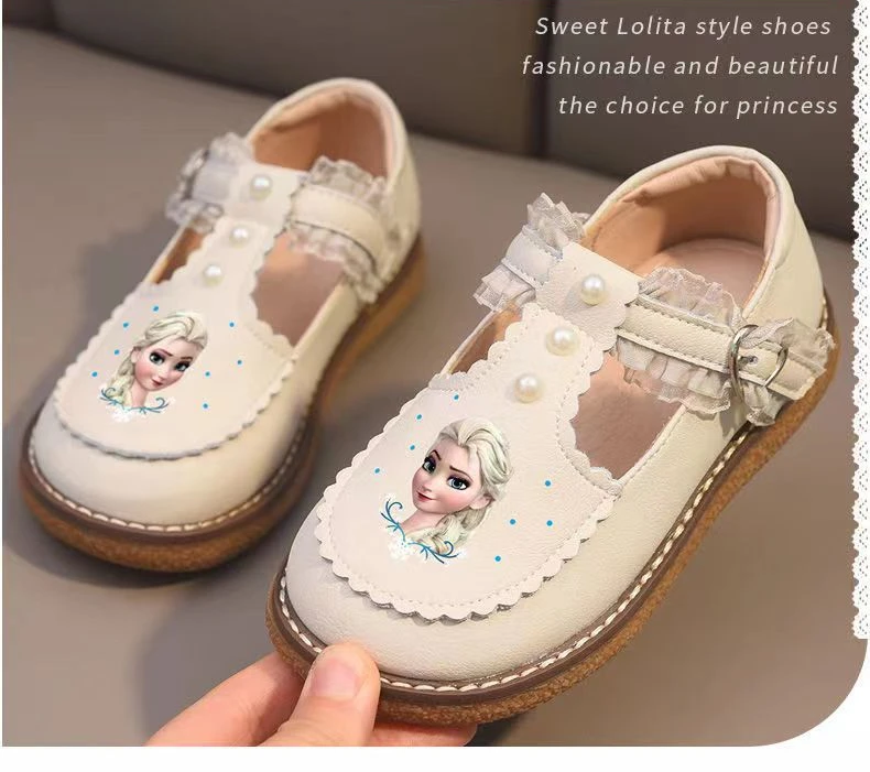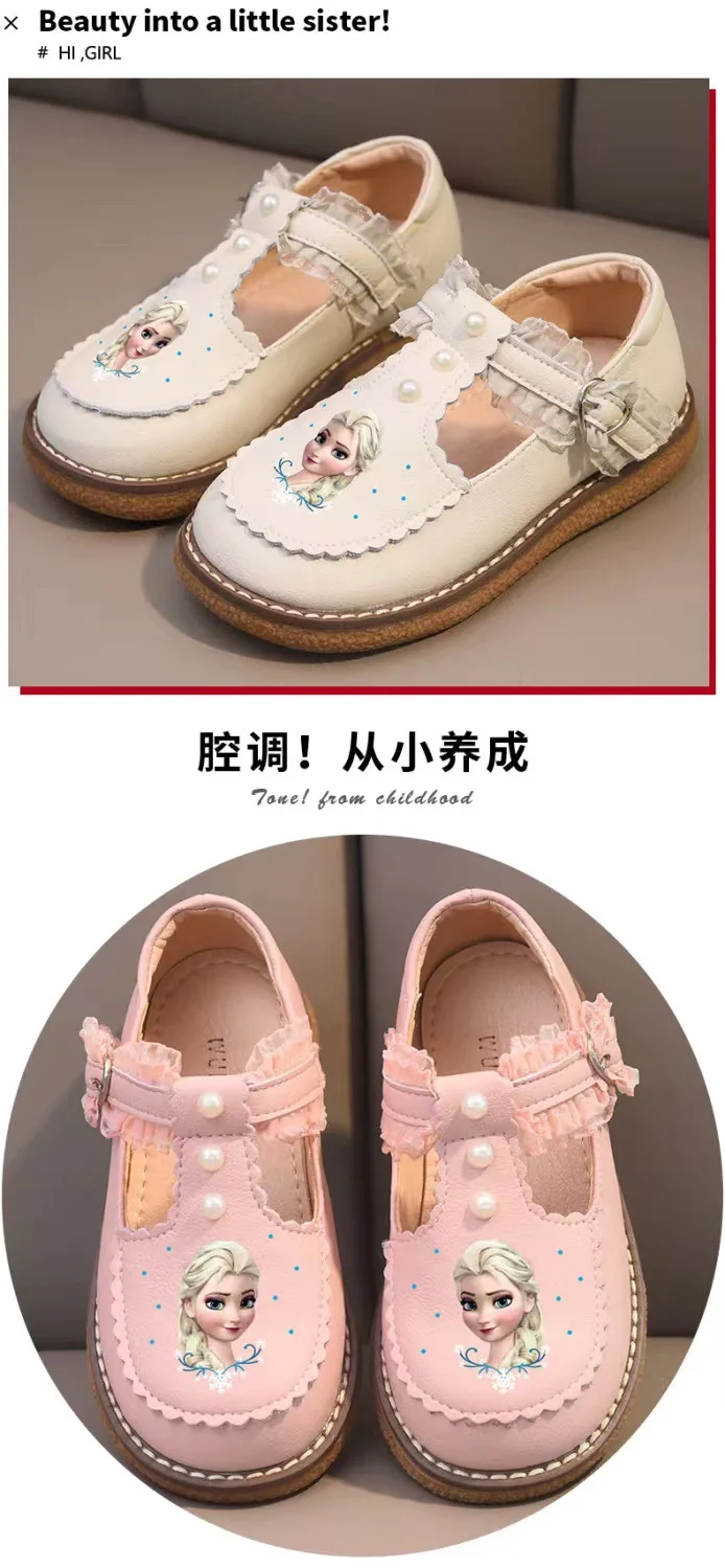 Disney Frozen Princess Girls Leather Casual Shoes - Spring Toddler Soft Sole Anti-Slip Walking & Play Footwear (Lolita Style)