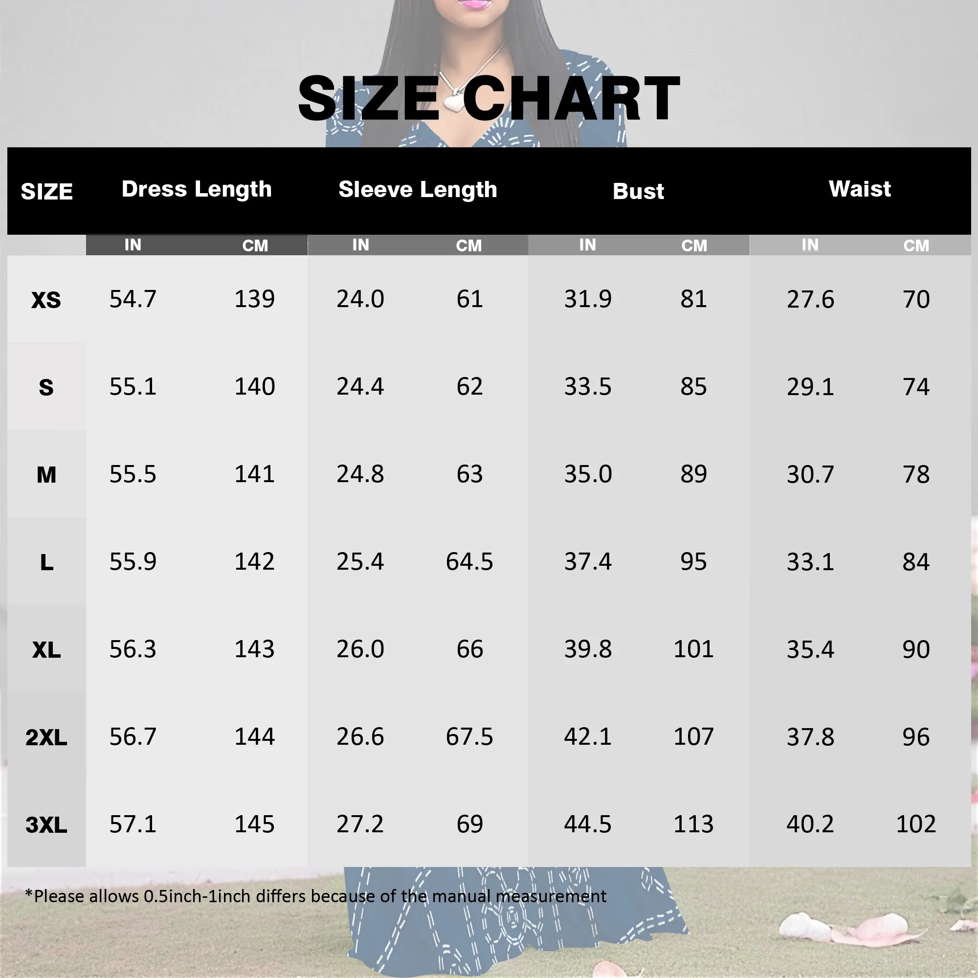 Elegant V-Neck Long Sleeve Geometric Print Maxi Dress for Women Autumn Vacation Style