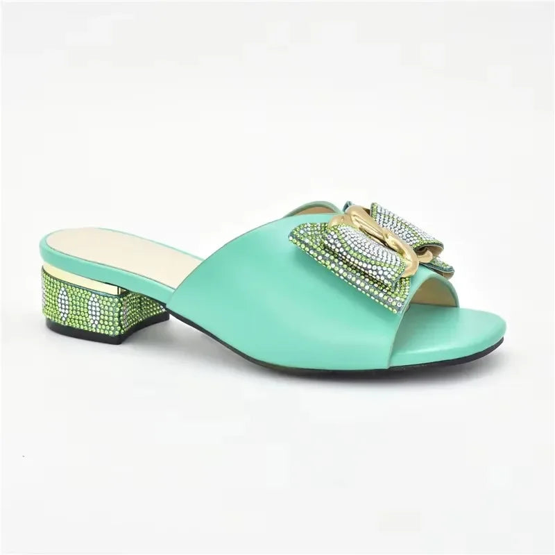 Elegant Women Shoes for Party Wedding Open Toe Pumps Ladies Dress Shoes Decorated with Rhinestone Floral Print African Pumps