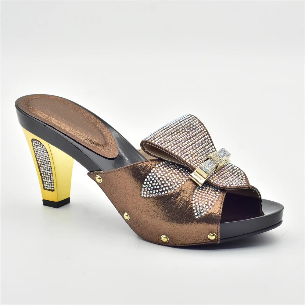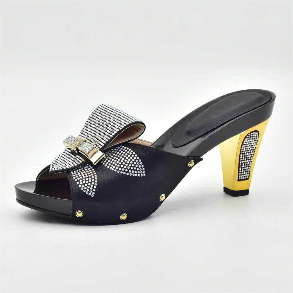 Gold Color Women Slippers Shoes African Women Wedding Shoes Elegant Italian Woman Shoes with Stone High Heels Woman Summer Pumps