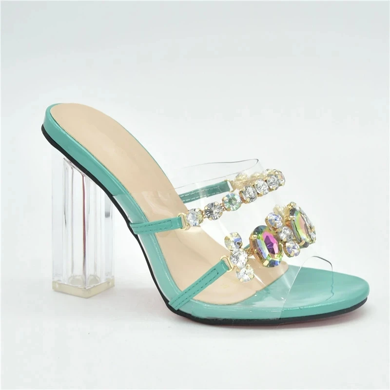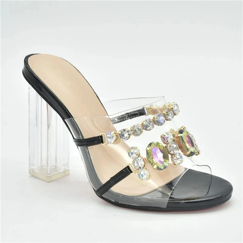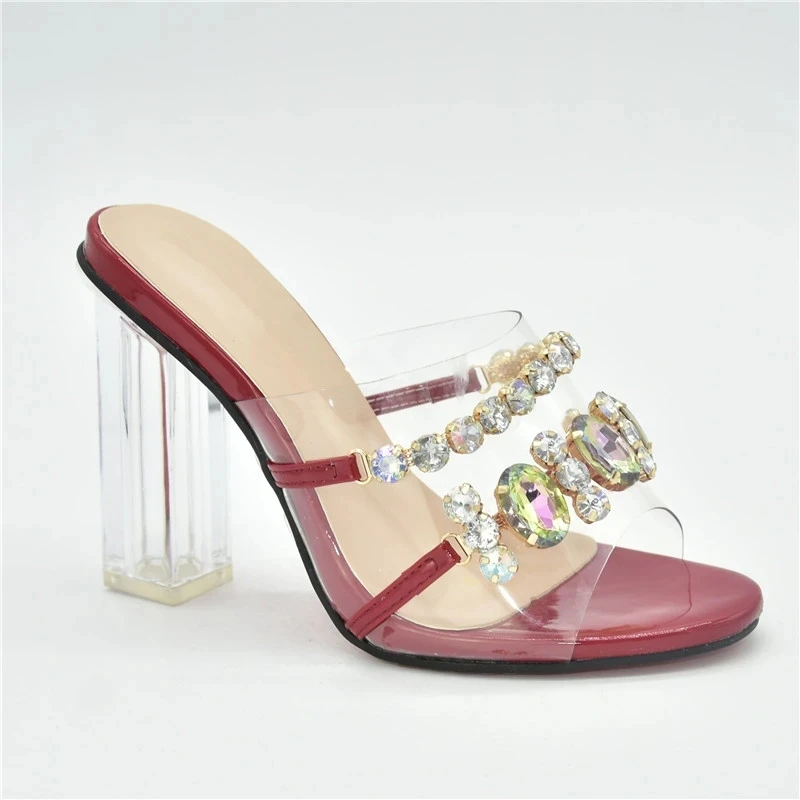 Italian Women Shoes Decorated with Rhinestone Open Toe Shoes for Wedding Women Clear Heels for Women Transparent