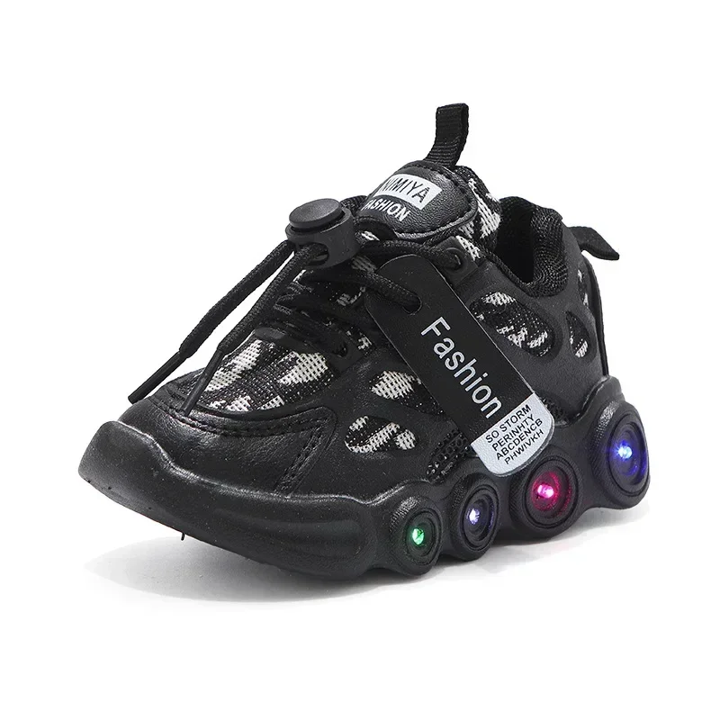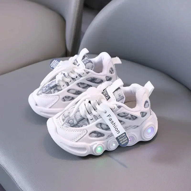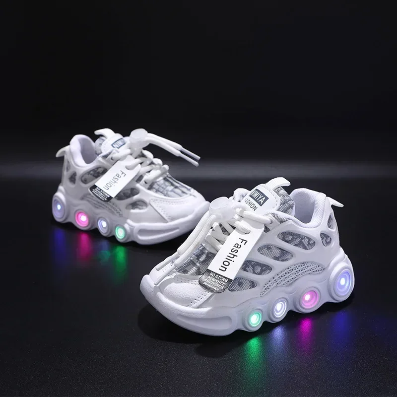 Kids LED Light Up Sneakers - Glow Boys 1-6 Years Breathable Mesh Sporty Shoes Casual Letter Webbing Luminous Footwear