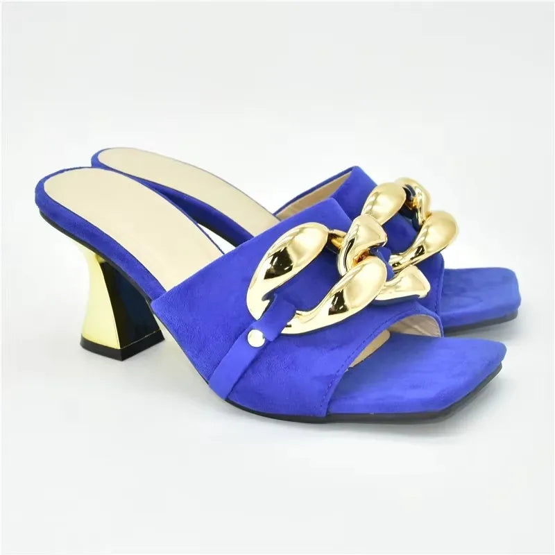 Ladies Metal Decorative Chain Wedding Bridal Shoes Ladies Open Toe High Heels Shoes Slip on Women Party Pumps