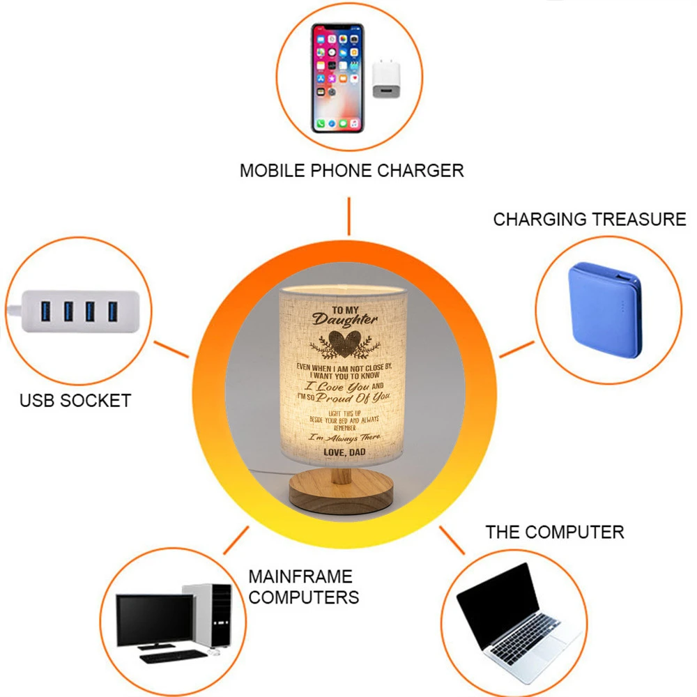 LED European Cloth Cover Table Lamp Solid Wood Base USB Plug Simple Nordic Bedroom Desktop Eye Protection Bedside Table Lamp