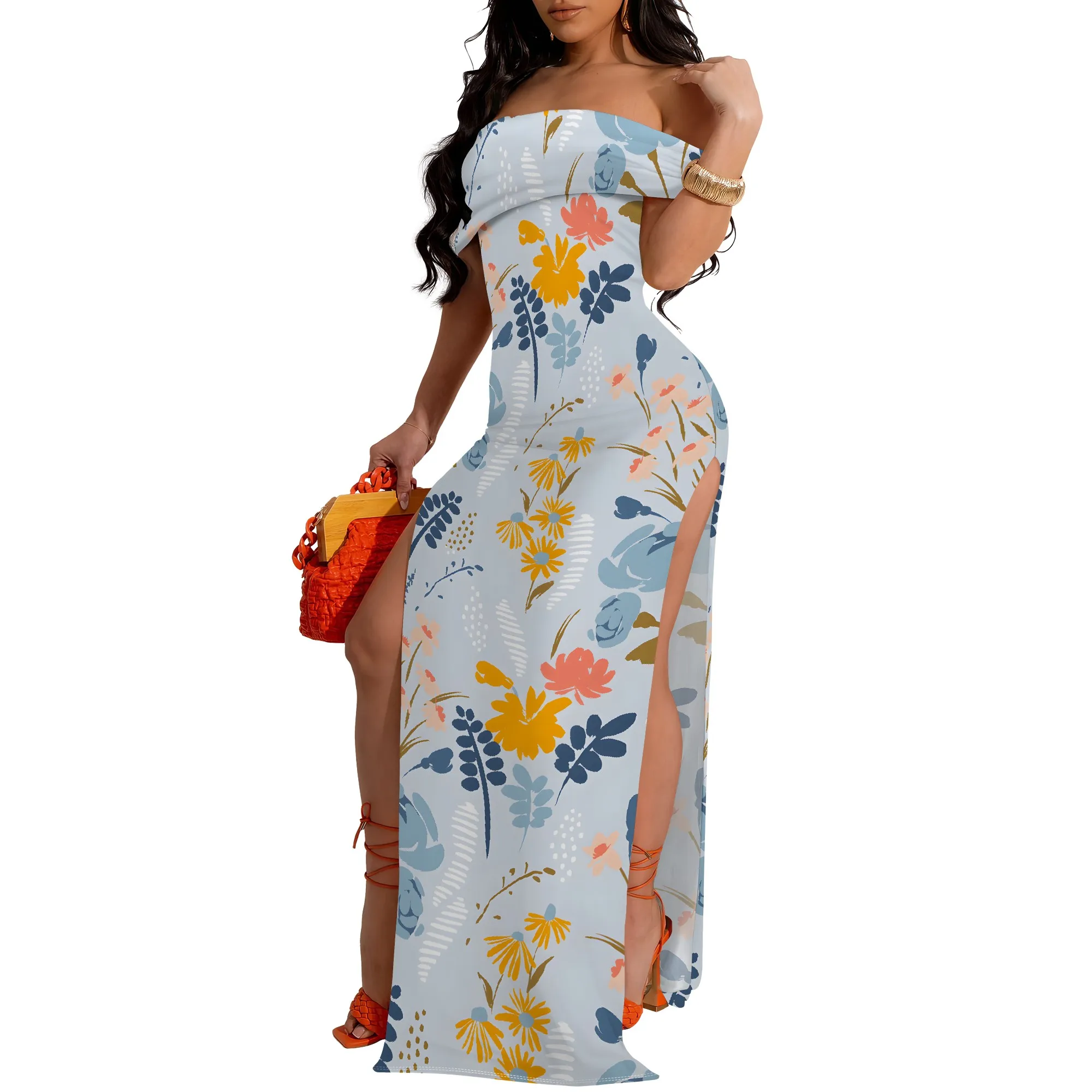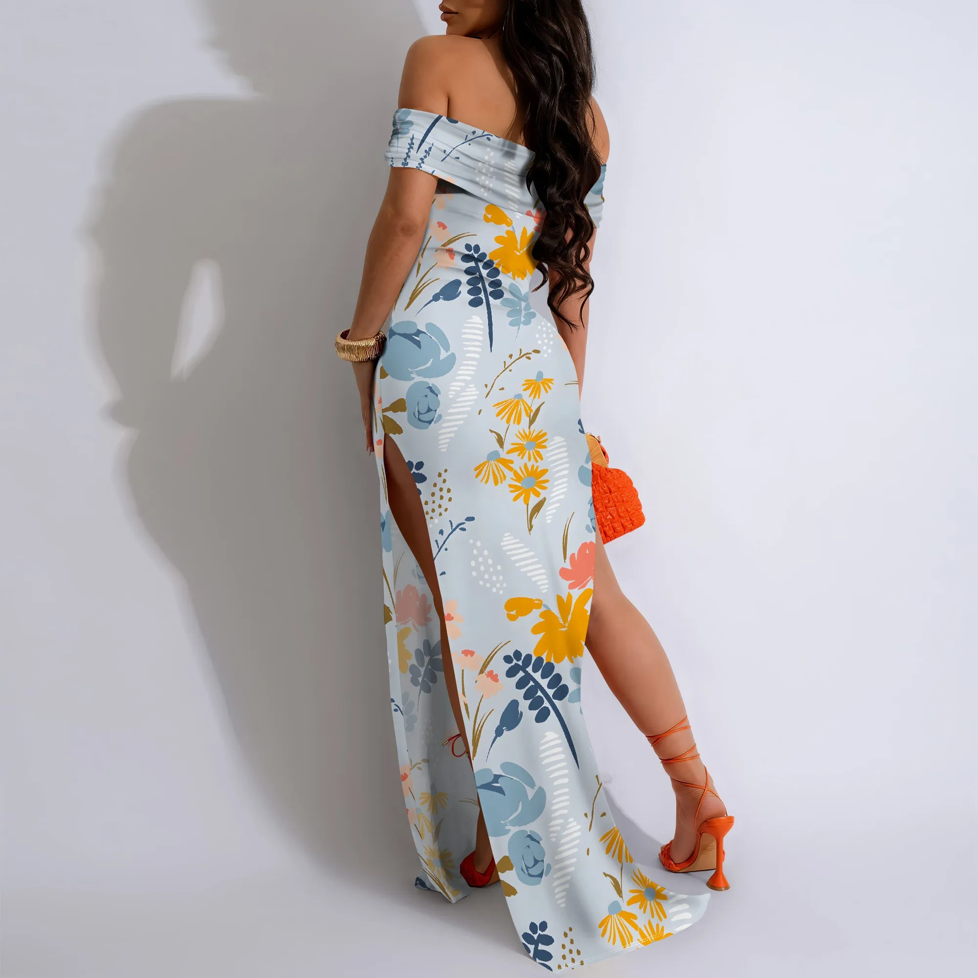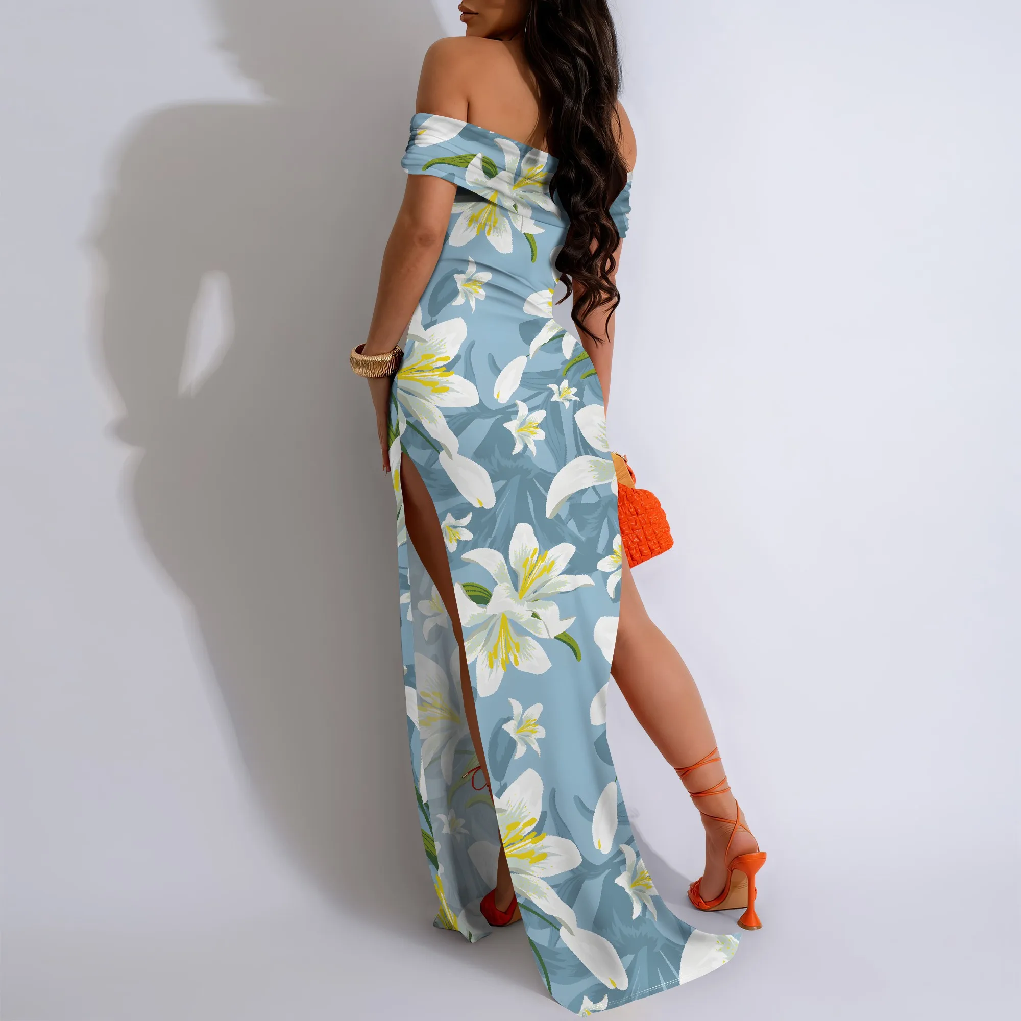 Lily Floral Off-Shoulder High Slit Maxi Dress - Women's Fresh Elegant Party Evening Resortwear Date Night