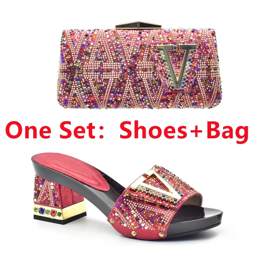 Luxury Shoe and Bag Set for Party in Women Wedding Shoes Woman Bride Rhinestone Design Elegant Shoes for Lady Peep Toe Pumps
