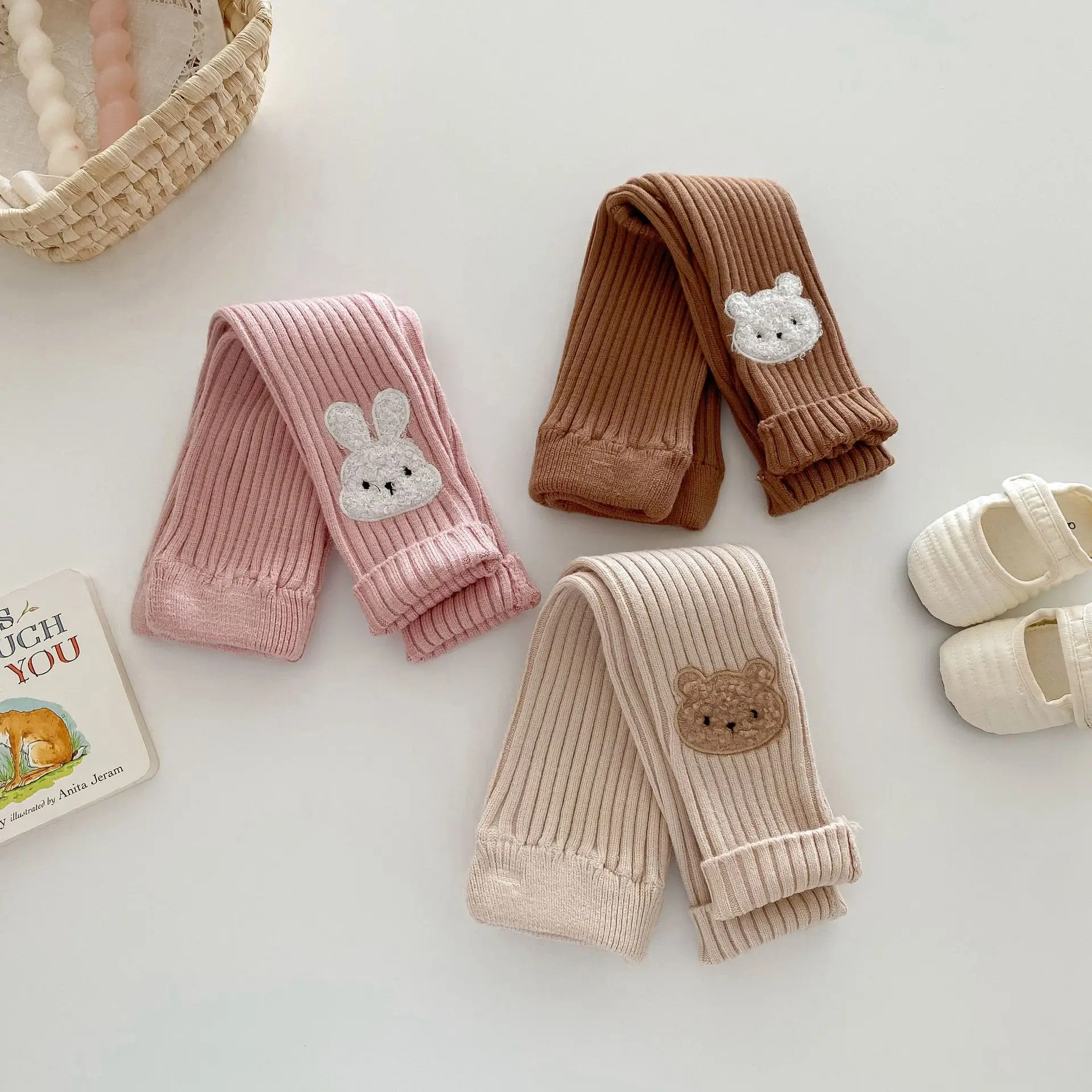 New Autumn Kids Knitted Leggings Girls Cute Cartoon Skinny Pants Children's Baby Pit Strip Trousers 0-5Y Girls