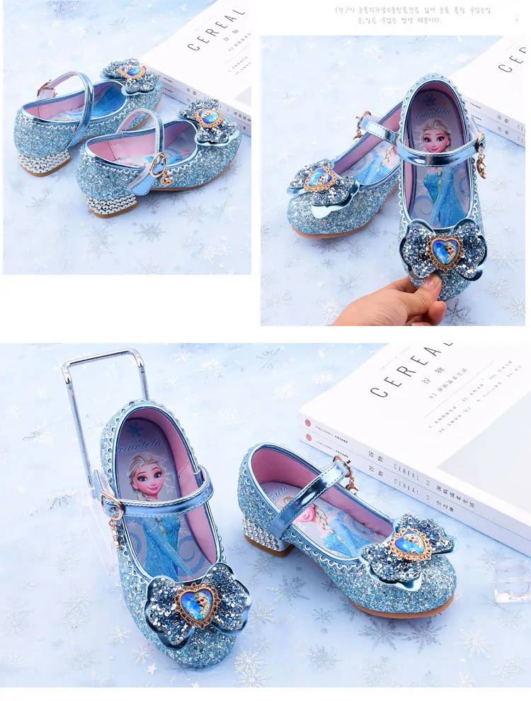 New Elsa Shoes For Girls Cartoon Leather Children Shoes Frozen Princess Kids Shoes Girl Sandals Dress Snow Queen Sandal Koreans