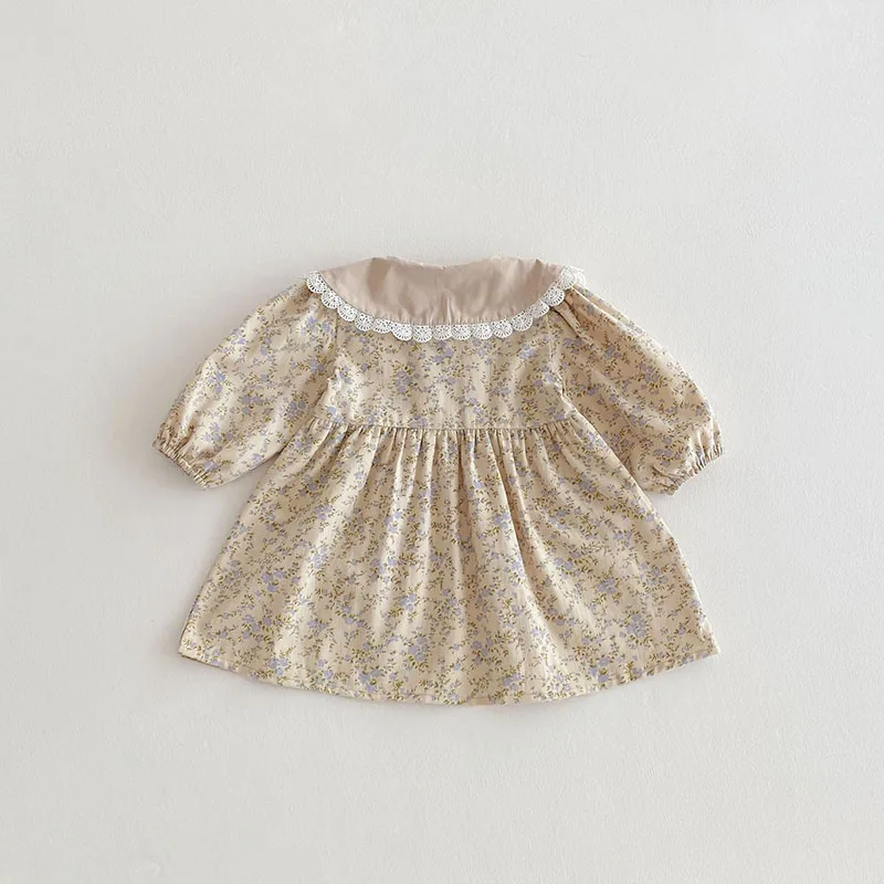 New Spring Girls Floral Dress Kids Cute Lace Doll Collar Princess Dress Children Sweet Flower Clothes For Kids 1-3Y Girls