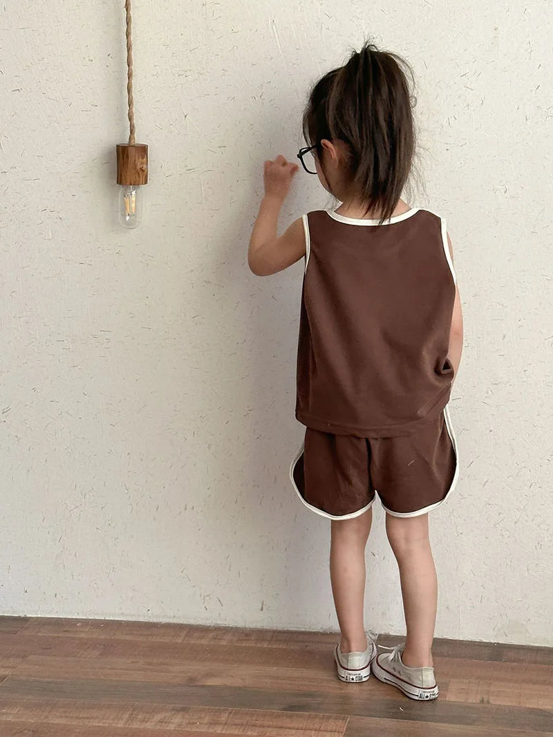 New Summer Kids Clothes Set Children Thin Style Letter Sports Suit Girls Tank Top Shorts Boys Outfits 4-6Y Unisex