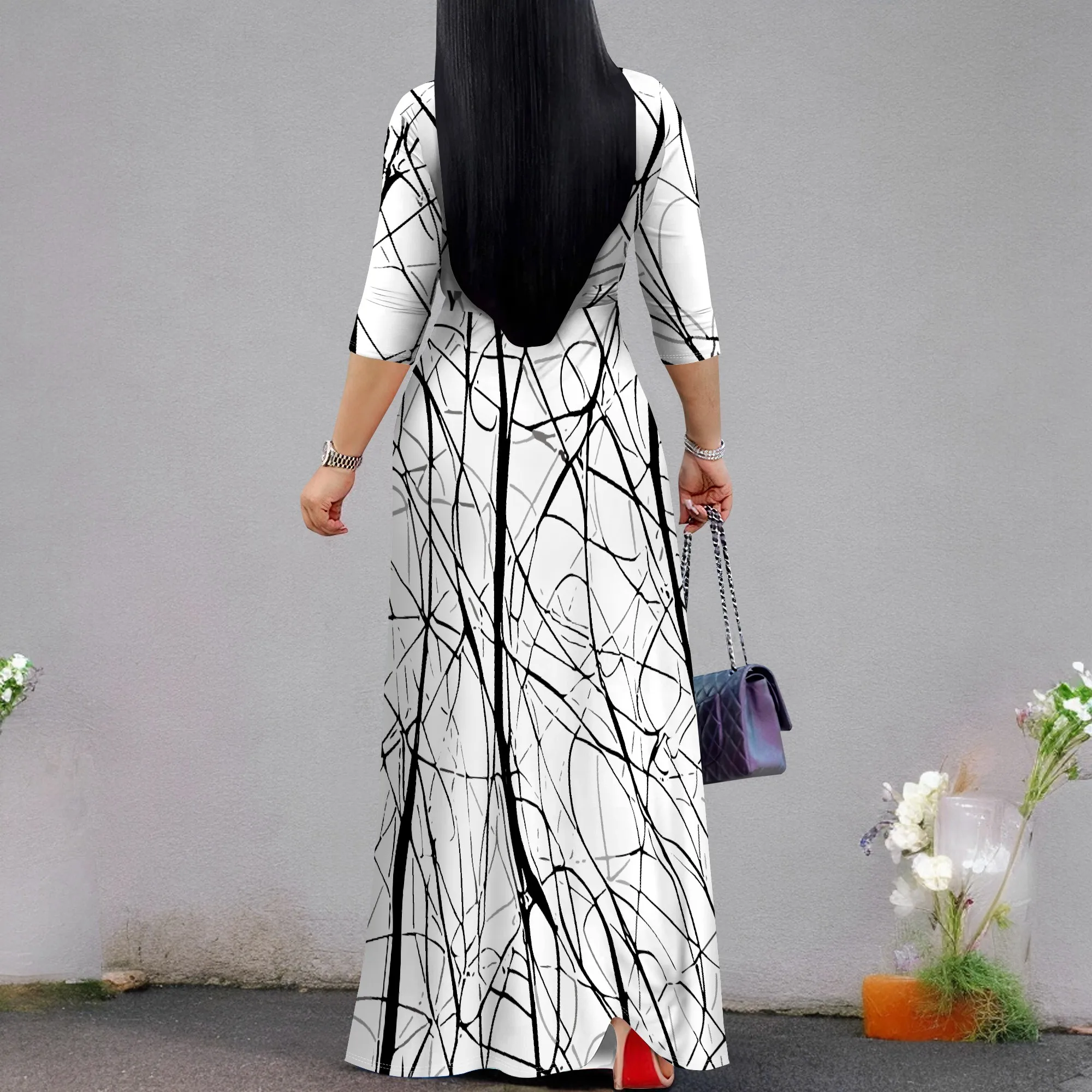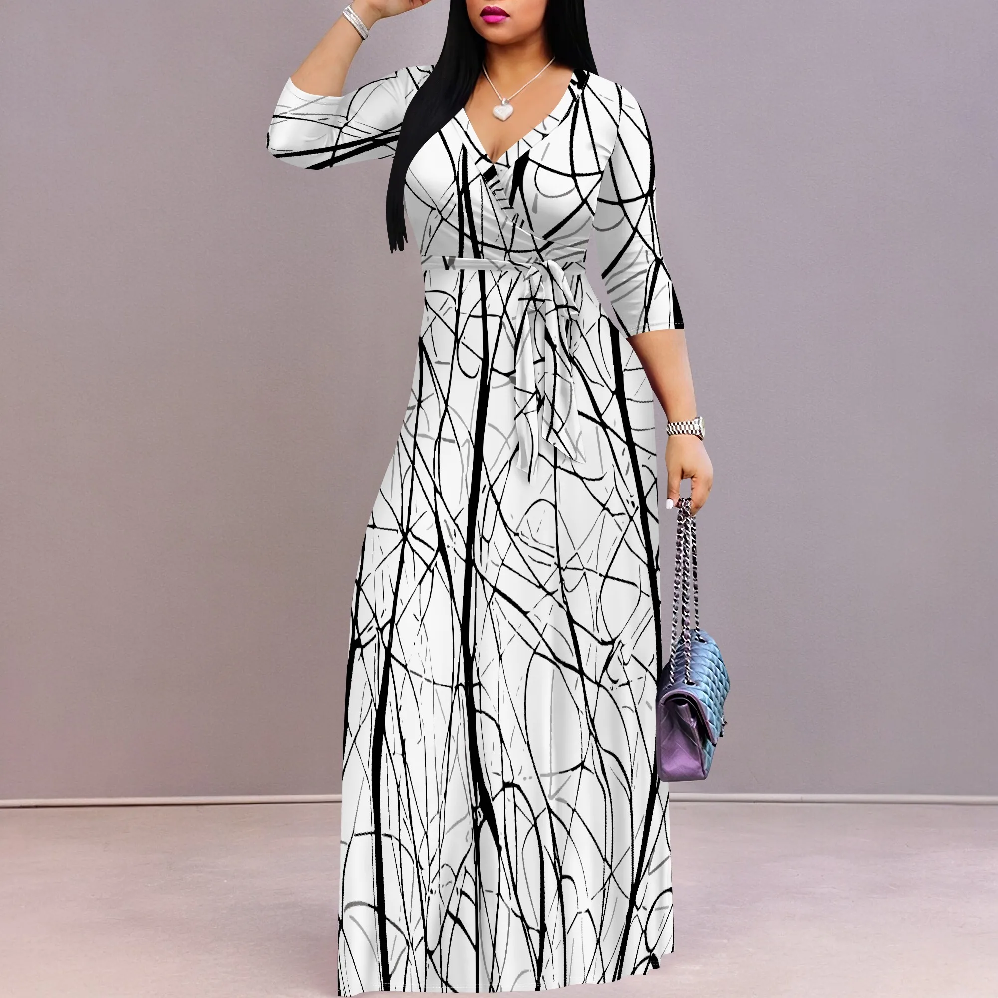 Plus Size Maxi Dress for Women Casual Summer Sundress V-Neck 3/4 Sleeve