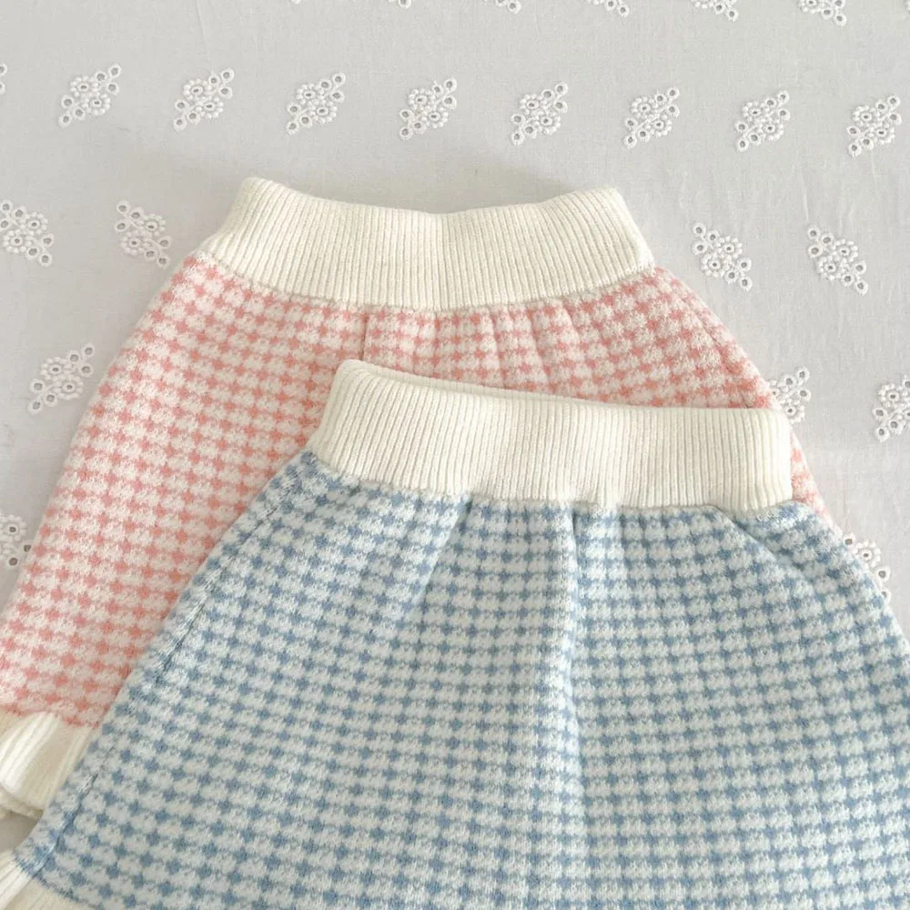 Spring Autumn Children's Clothing Set Girls Plaid Knitted Sweater and Skirt 2PCS Trendy Bow Cardigan Outfit 1-5Y Girls