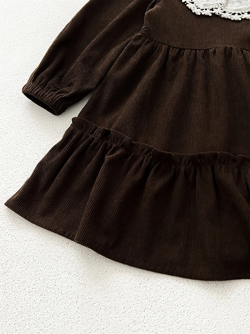 Spring Autumn Girls' Dress Corduroy Long Sleeve Lace Ruffled Collar Dress for Kid's Children's Clothing 2-6Y Girls