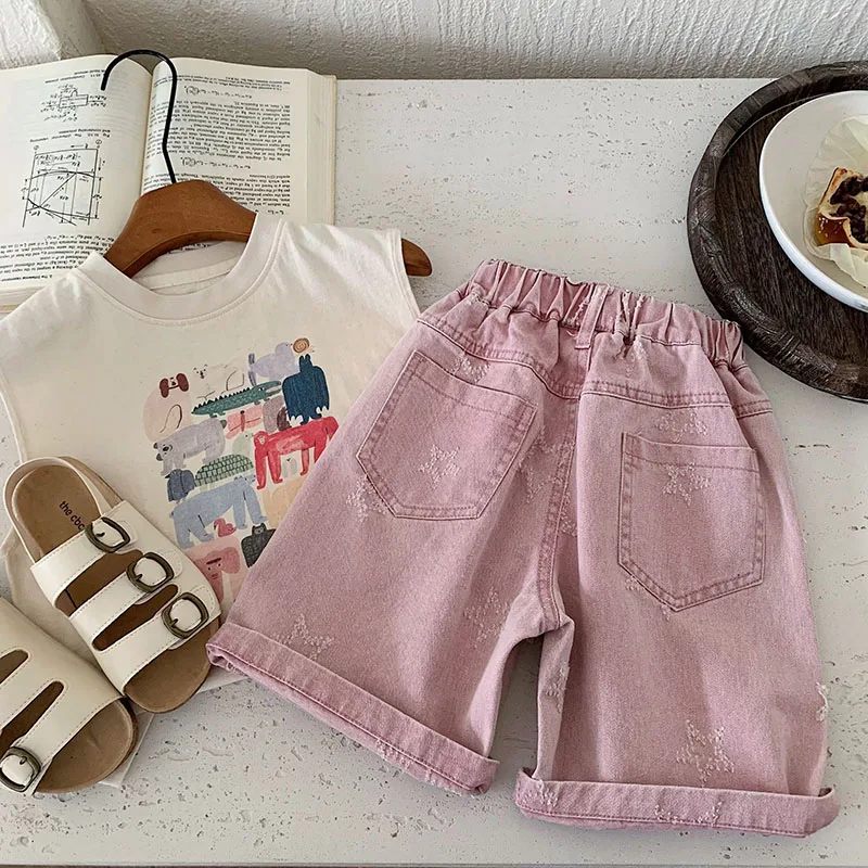 Summer Children's Denim Shorts Thin Star Fashion Boys Shorts Kids Loose Korean Version Girls Casual Pants 1-6T Unisex